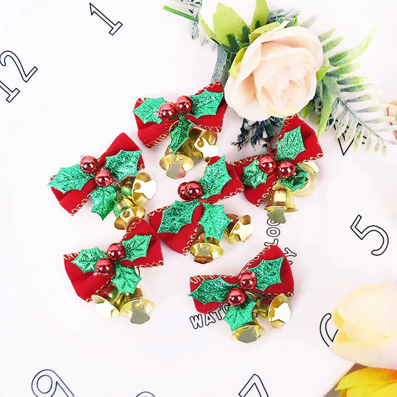 6 шт., бант-галстук с колокольчиком для украшения рождественской елки, Рождественское украшение подвеска фенек