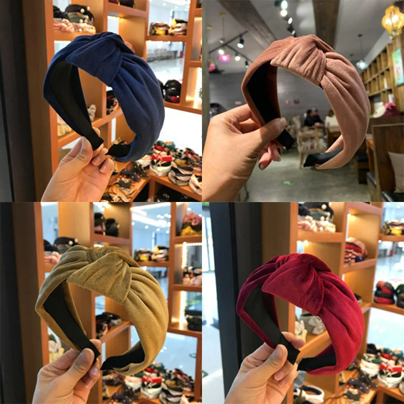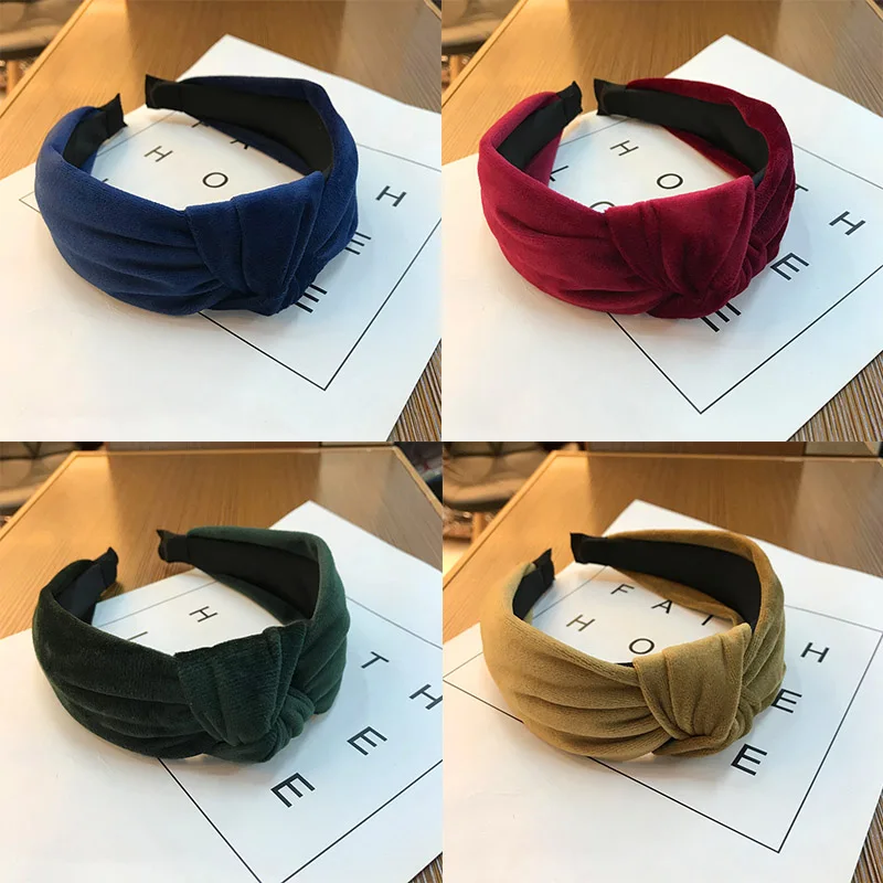 Повязка на голову женская бархатная, модный однотонный простой аксессуар для волос, широкая эластичная лента с узлом сбоку