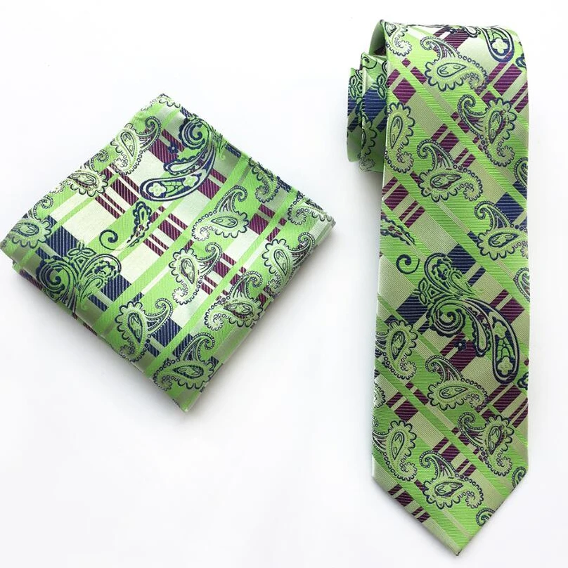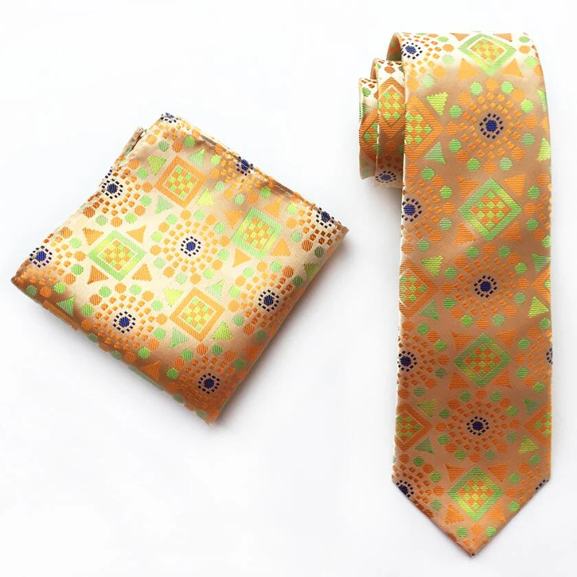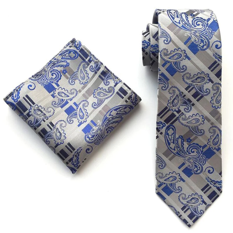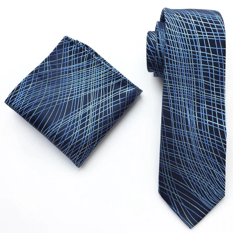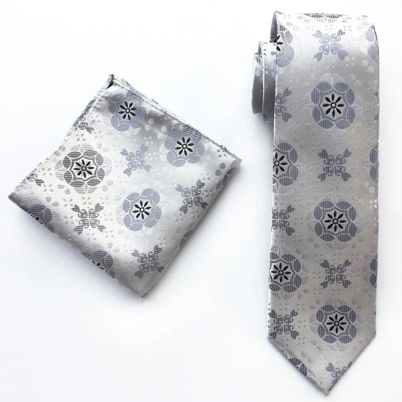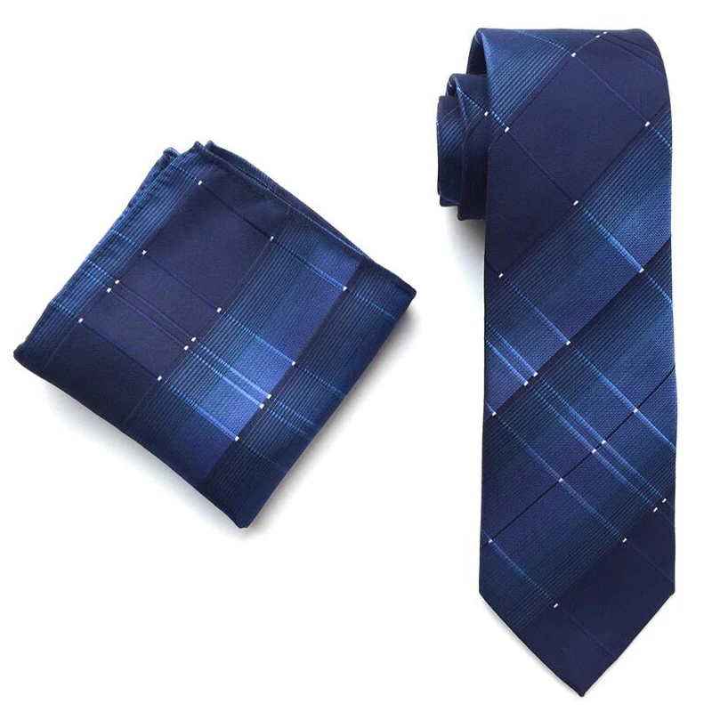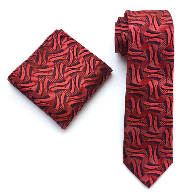 Ricnais Fashion 8cm Formal Silk Pocket SquareTie Set Red Grey Plaid Jacquard Handkerchief Necktie Suit For Men Business Gravata