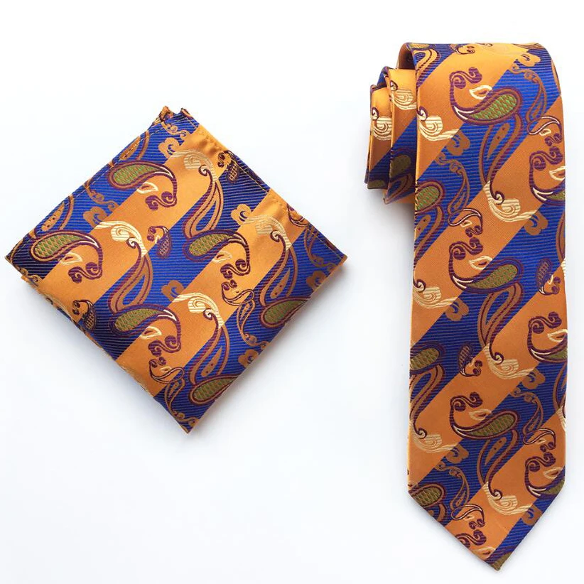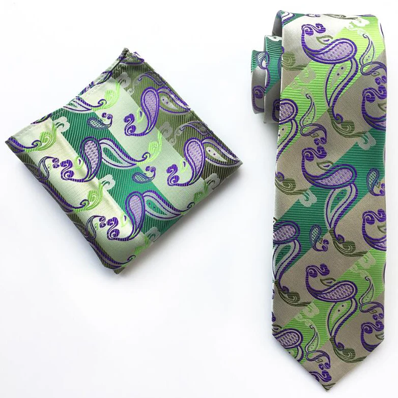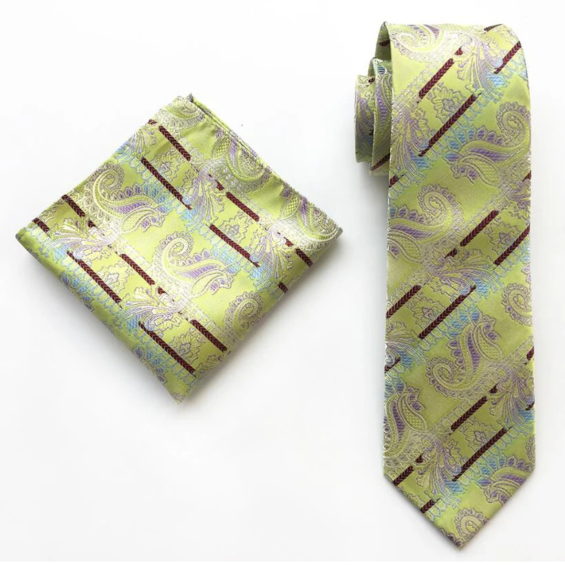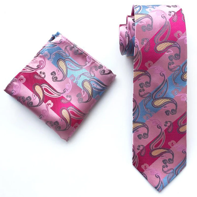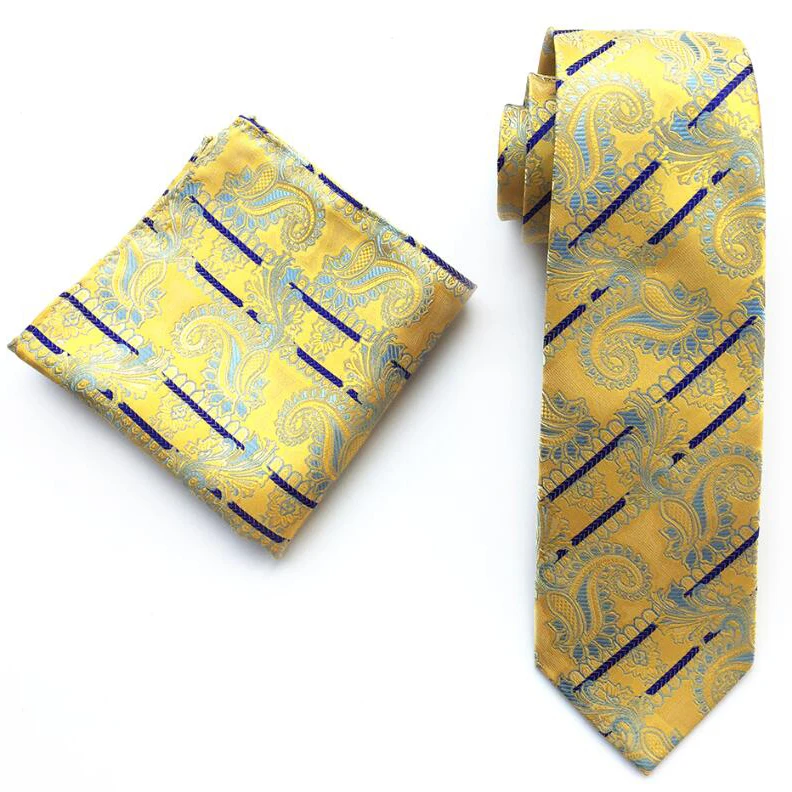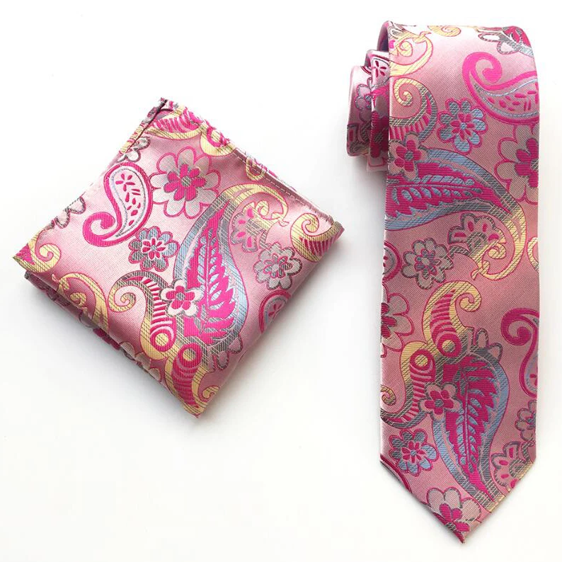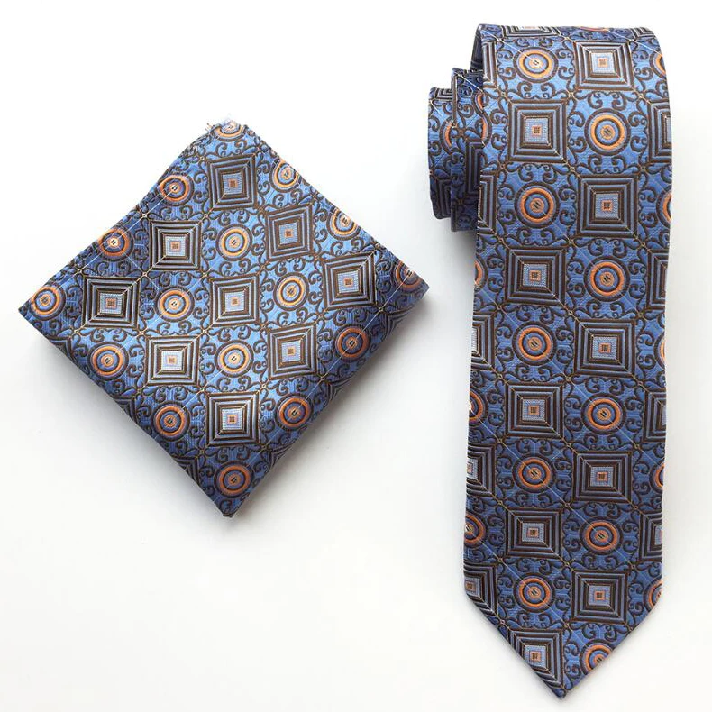 Ricnais Fashion 8cm Formal Silk Pocket SquareTie Set Red Grey Plaid Jacquard Handkerchief Necktie Suit For Men Business Gravata