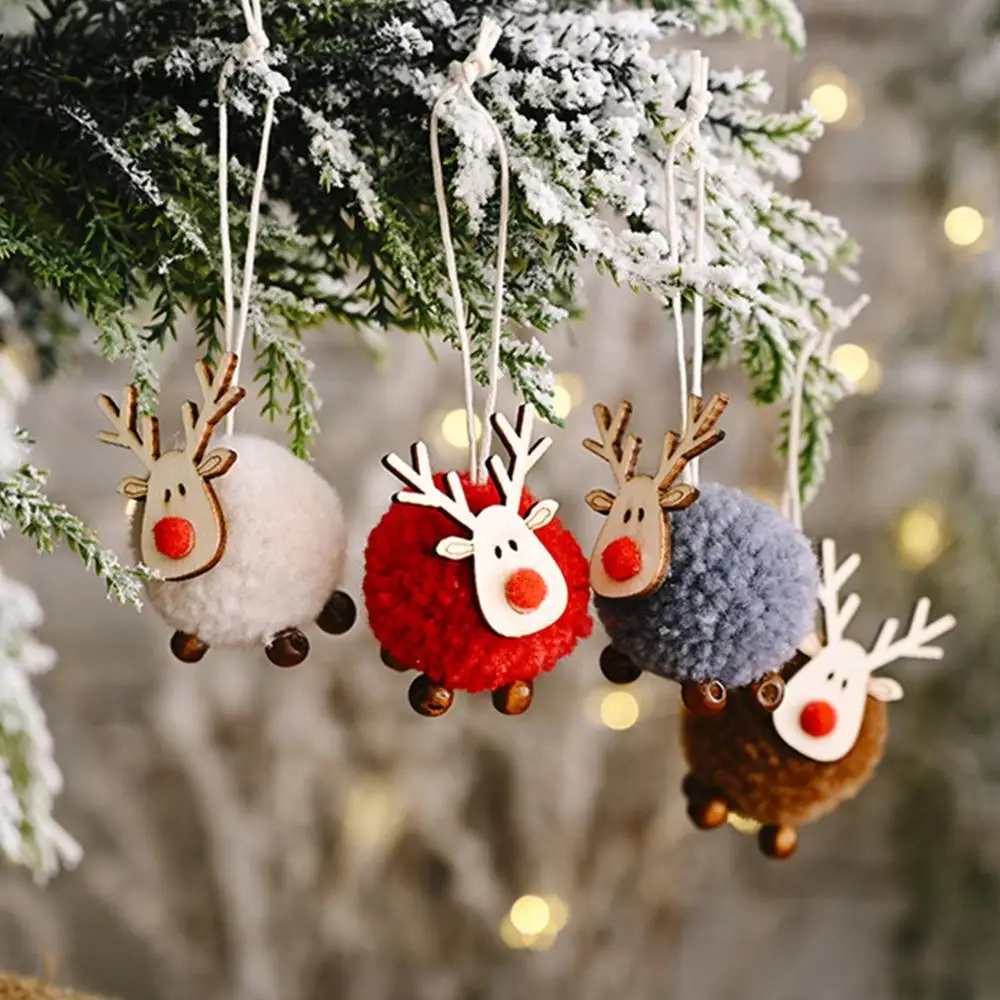 Милые войлочные деревянные украшения для рождественской елки с оленем, подвесная подвеска, украшение для рукоделия, рождественские украшения для дома