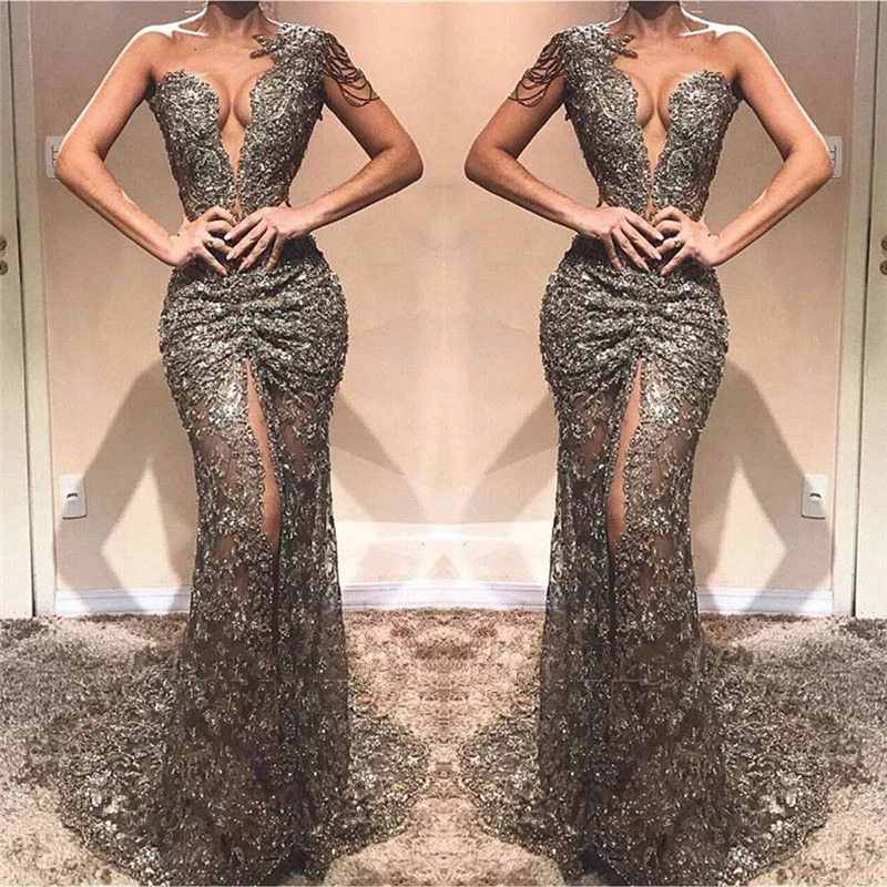 2021 Длинные вечерние платья с блестками на одно плечо Vestidos De ...