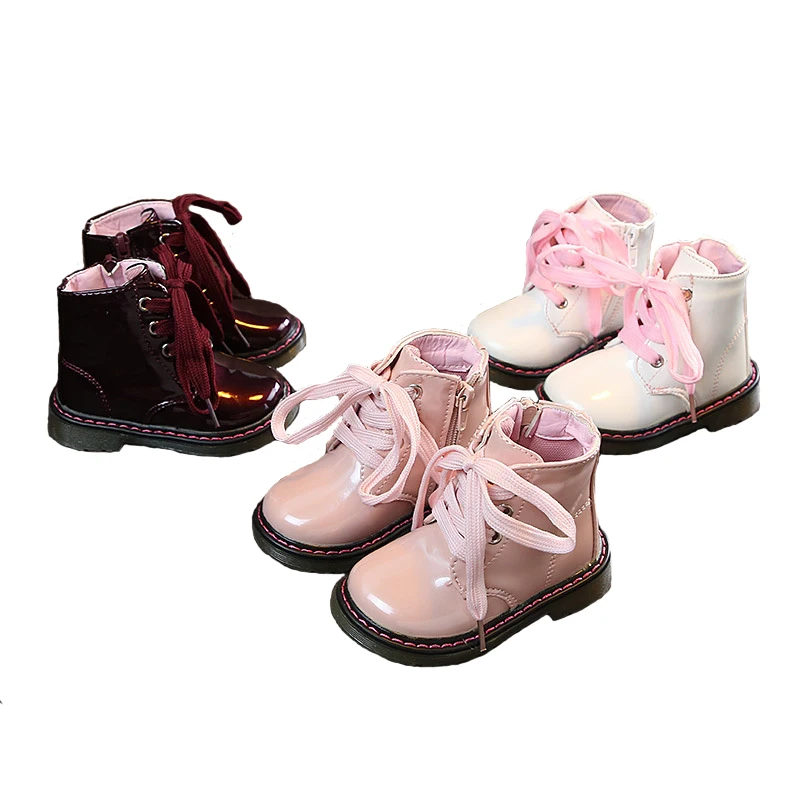 Детские ботинки, осенне-зимняя кожаная обувь для девочек, однотонные ботинки для маленьких девочек, Нескользящие Плюшевые Теплые ботильоны для мальчиков SYJ047
