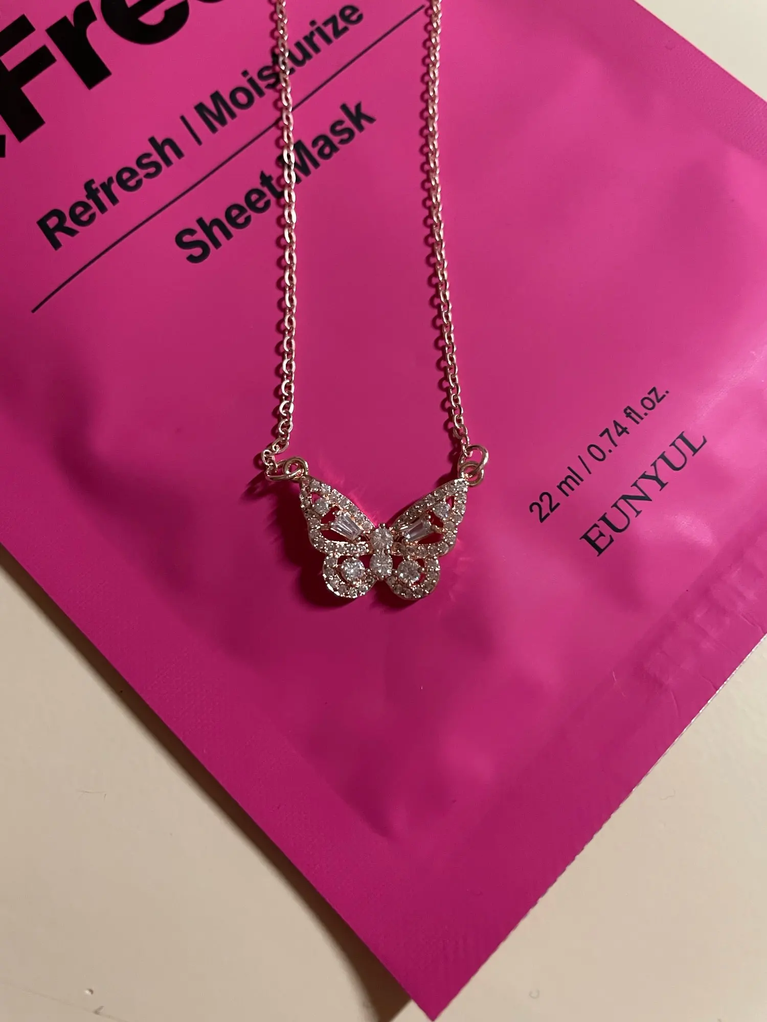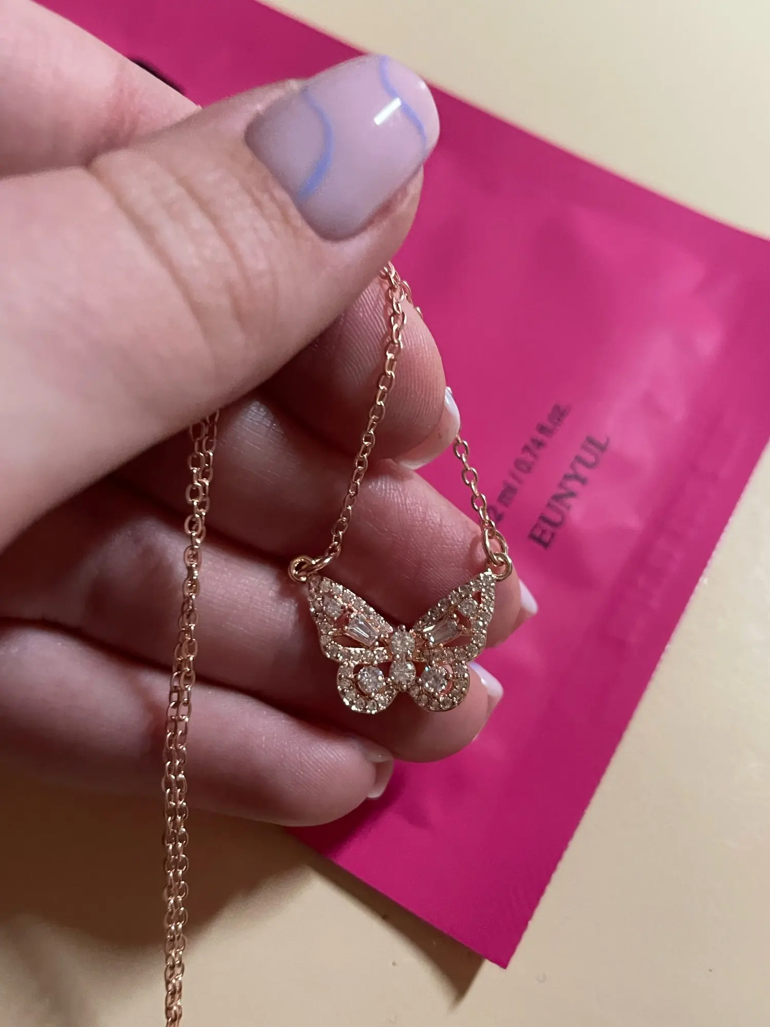Ins Горячая Бабочка Кристалл Циркон розовое золотое ожерелье ожерелья из нержавеющей стали для женщин цепные аксессуары Оптовая продажа Подарочный кулон