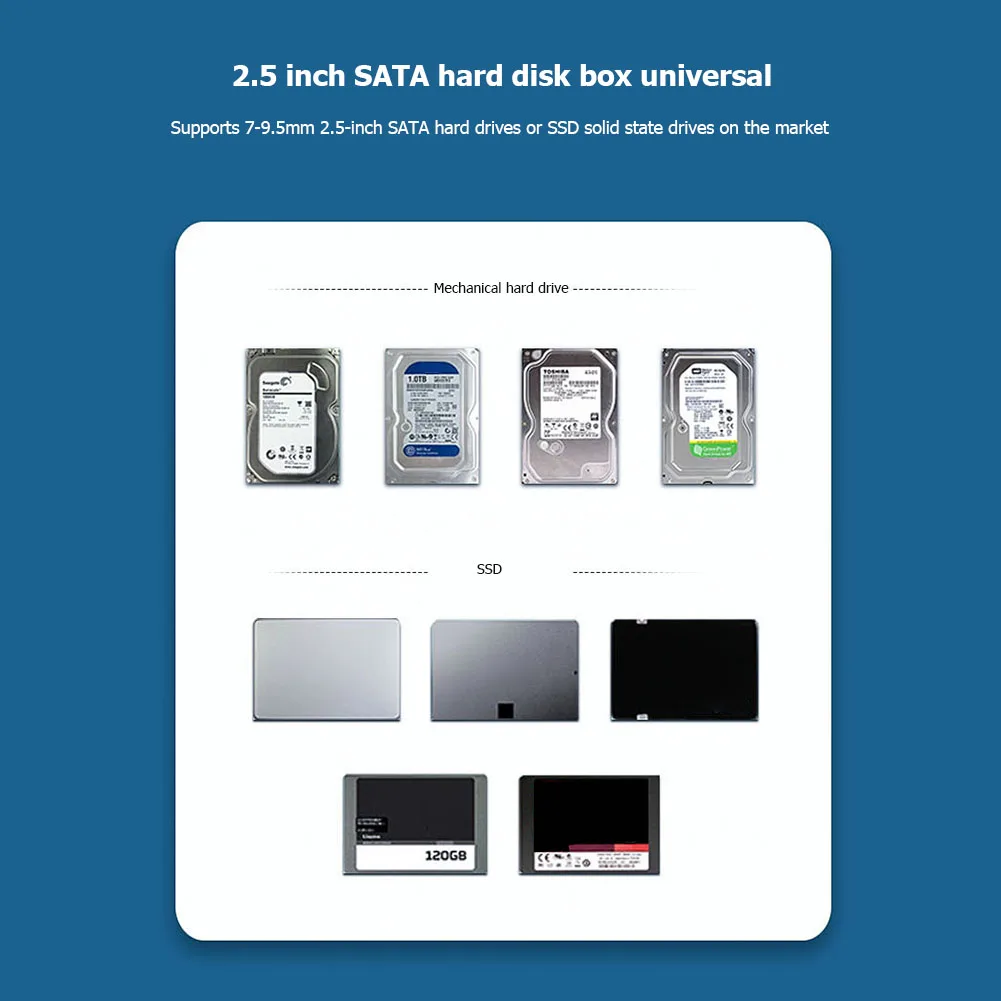 ORICO 2020U 3 Пластиковый USB3.0 2,5 дюймов SATA SSD жесткий диск чехол поддержка 4 ТБ Мобильный Внешний корпус для жесткого диска коробка высокая скоростьСпецификация:Бренд: ORICOМодель: 2020U3Цвет: черныйТовар: 2,5 дюйма Мобильный жесткий диск чехолМатериал: пластикВыходной интерфейс: USB3.0 Micro-BПоддержка рынка 7-9,5 мм 2,5 дюймов SATA жесткий диск или твердотельный накопитель (SSD жесткий дискОсновная схема управления: NS1068X (5 Гбит/с)Скорость передачи: 5 Гбит/сРазмер (ДхШхВ): 130.8x78x1 5 мм/5.15x3.07x0.59inЕмкость поддержки: до 4 ТБСпособ установки: установка раздвижной крышкиСистема поддержки: для Windows XP / 7 / 8 / 10 / Mac OS / LinuxПримечание:В связи с различиями мониторов и эффектами освещения реальный цвет товара может немного отличаться от цвета на фотографиях. Спасибо!Возможны отклонения в 1-3 мм вследствие измерений вручную.
