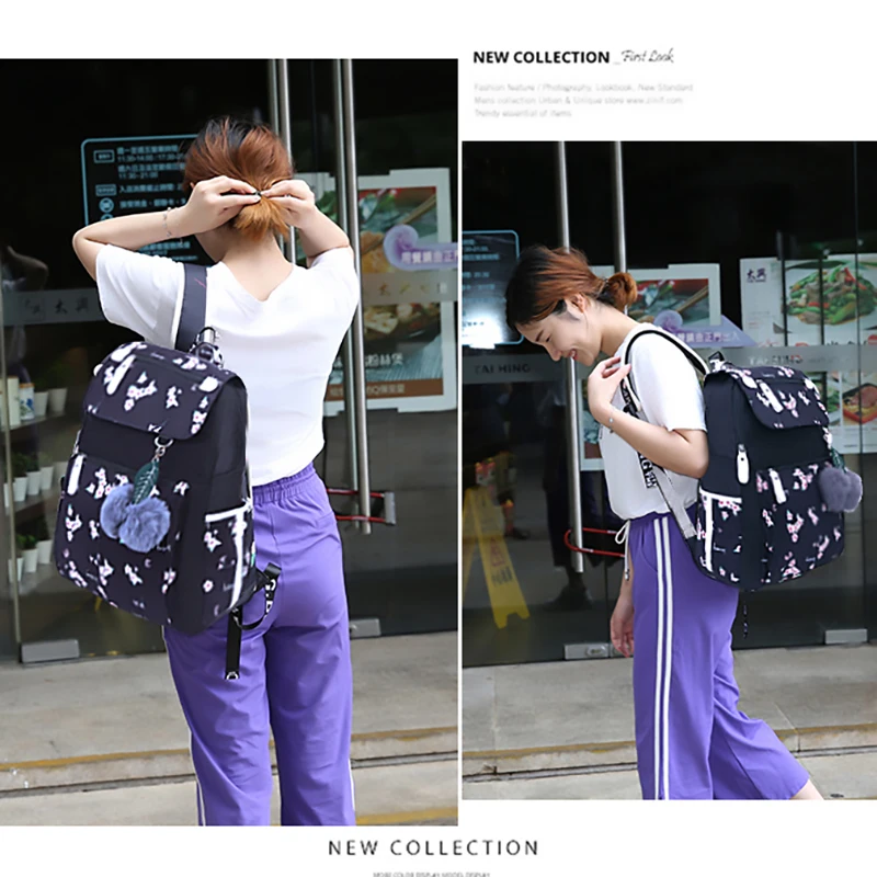 Модный женский рюкзак с цветочным принтом, школьные ранцы для девочек-подростков, водонепроницаемые сумки на плечо, большой школьный ранец