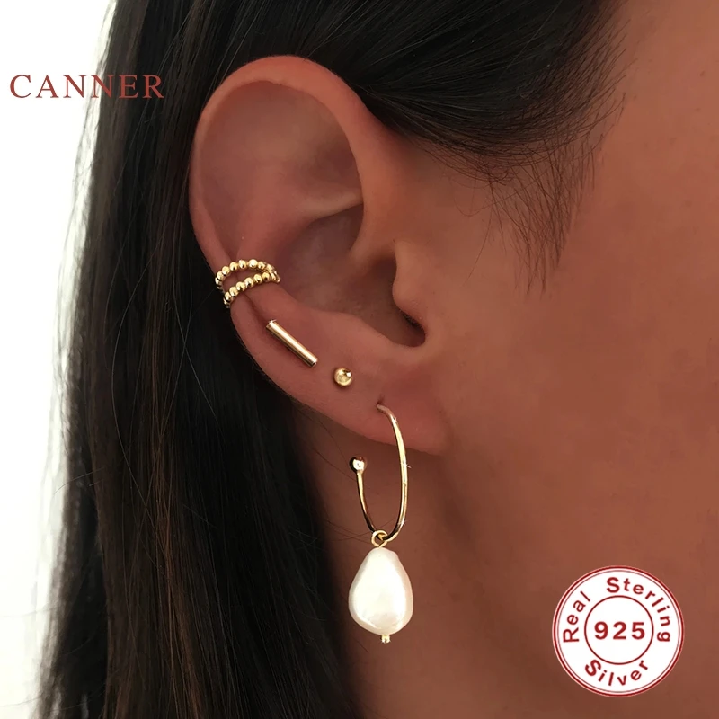 Женские серьги CANNER из настоящего стерлингового серебра 925 пробы, серьги-кольца с двумя точками, серьги с цирконием, ювелирные украшения из золота