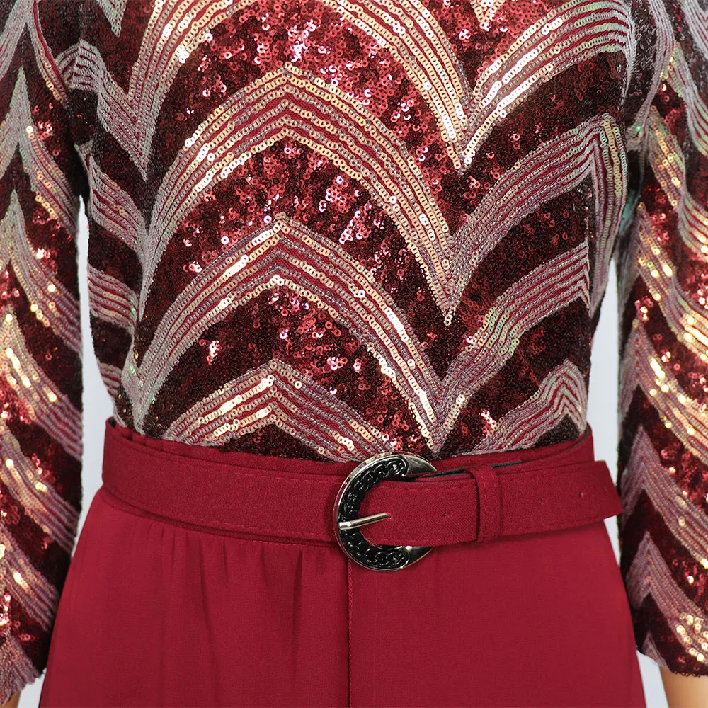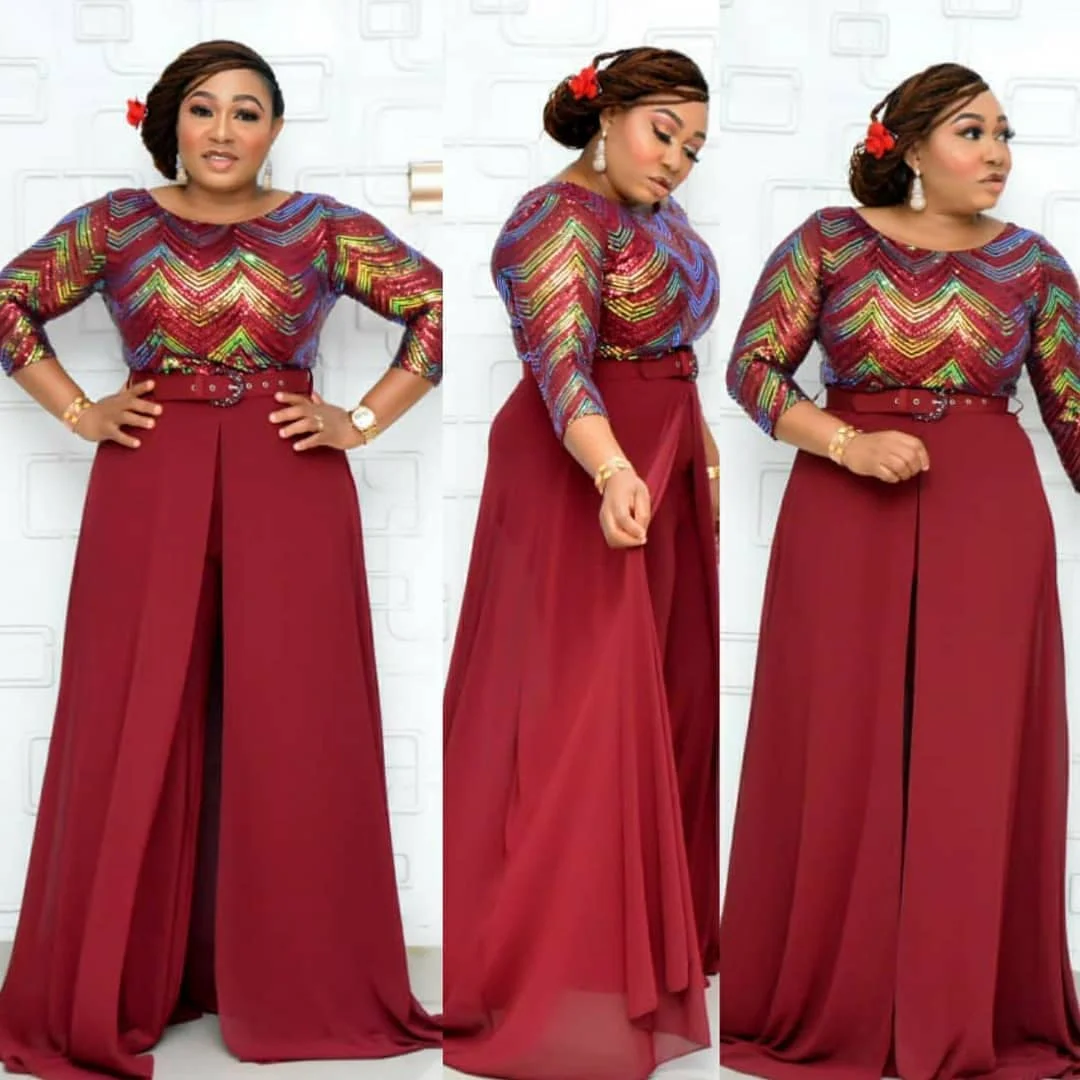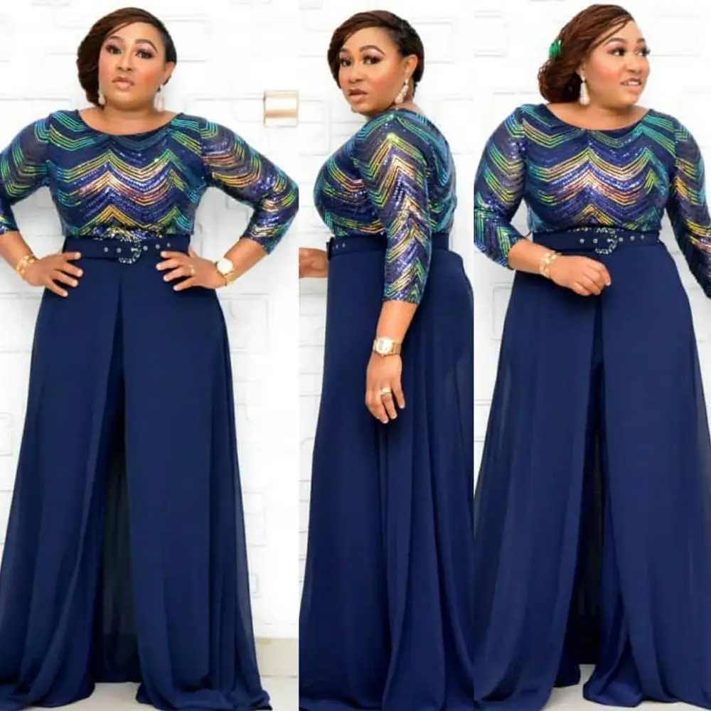 Африканский женский шифоновый Элегантный Модный комбинезон с цветными бусинами + пояс