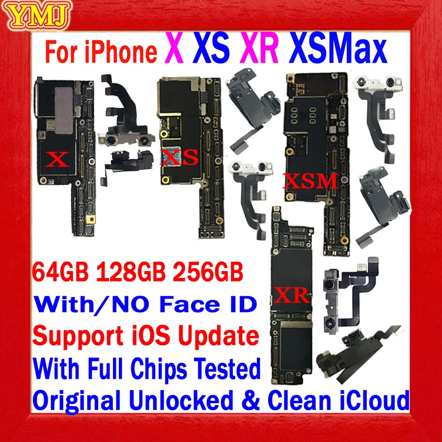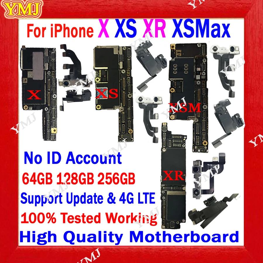 Материнская плата сбез face ID для iPhone x, xr, xs max, 64 ГБ, 128 ГБ, 256 ГБ, 100% оригинал, разблокировка бесплатно, логическая плата icloud, хорошо протестирована