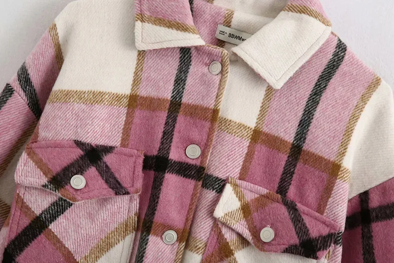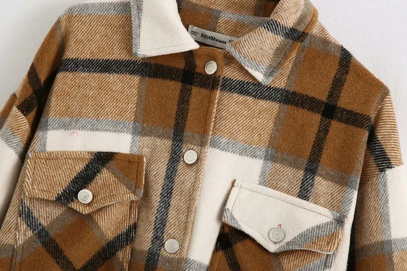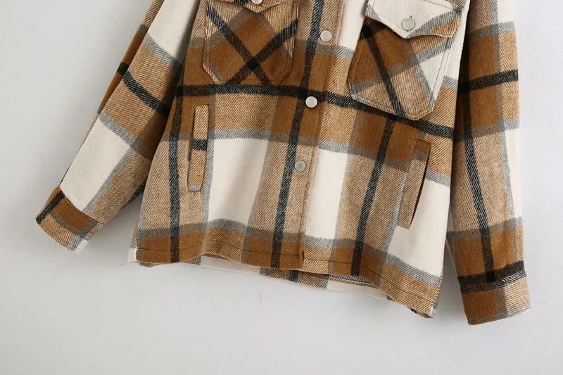 Куртка женская осенне-зимняя в клетку, с карманами