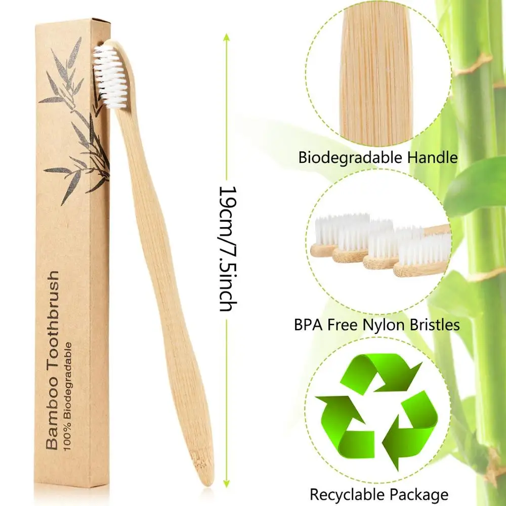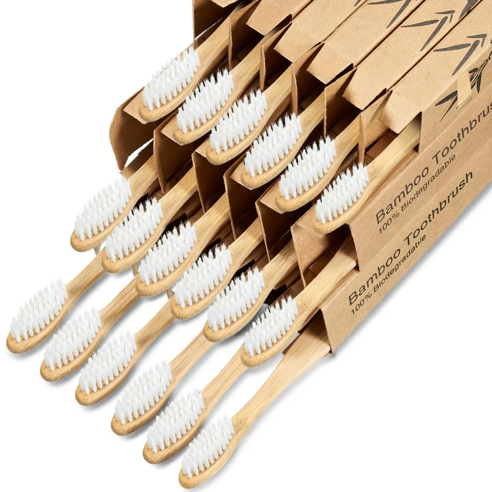 Зубные щетки bambootoothbrush, экологически чистые, с деревянной бамбуковой ручкой, 100% натуральный уголь, не содержит бисфенола А, биоразлагаемая щетка со средней мягкой щетиной