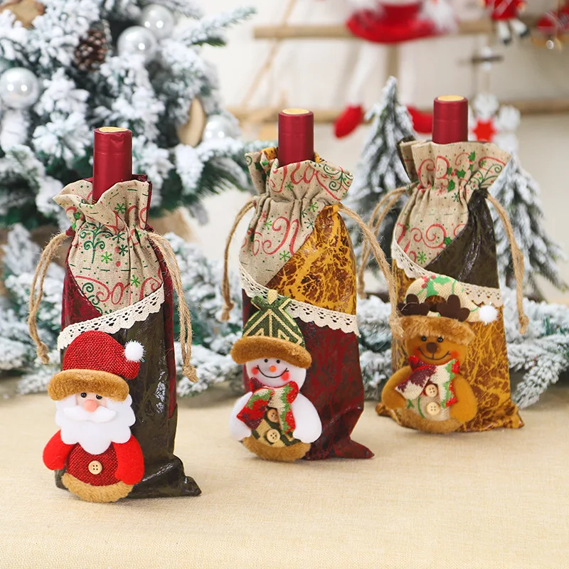 Рождественские Чехлы для винных бутылок, праздничные Чехлы для буты...