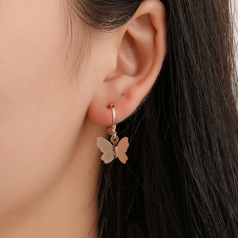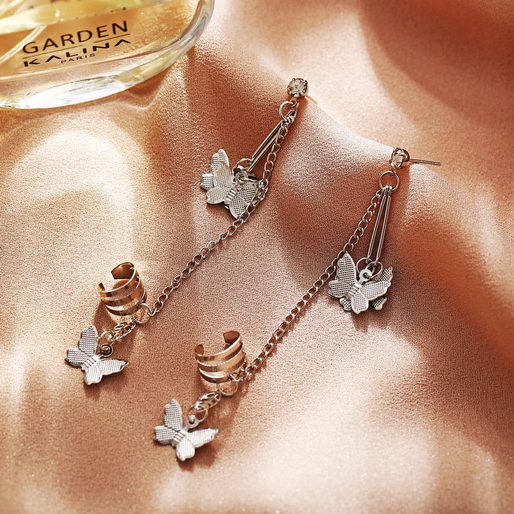 Серьги-бабочки серебристого цвета в стиле панк женские, длинные вис...