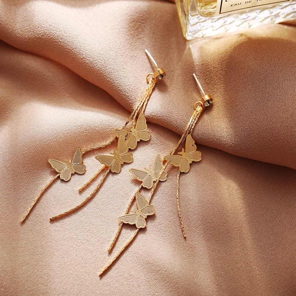 Модные Многослойные серьги-бабочки, богемные длинные кисточки, серьги для женщин, клипсы, серьги-бабочки, ювелирные изделия