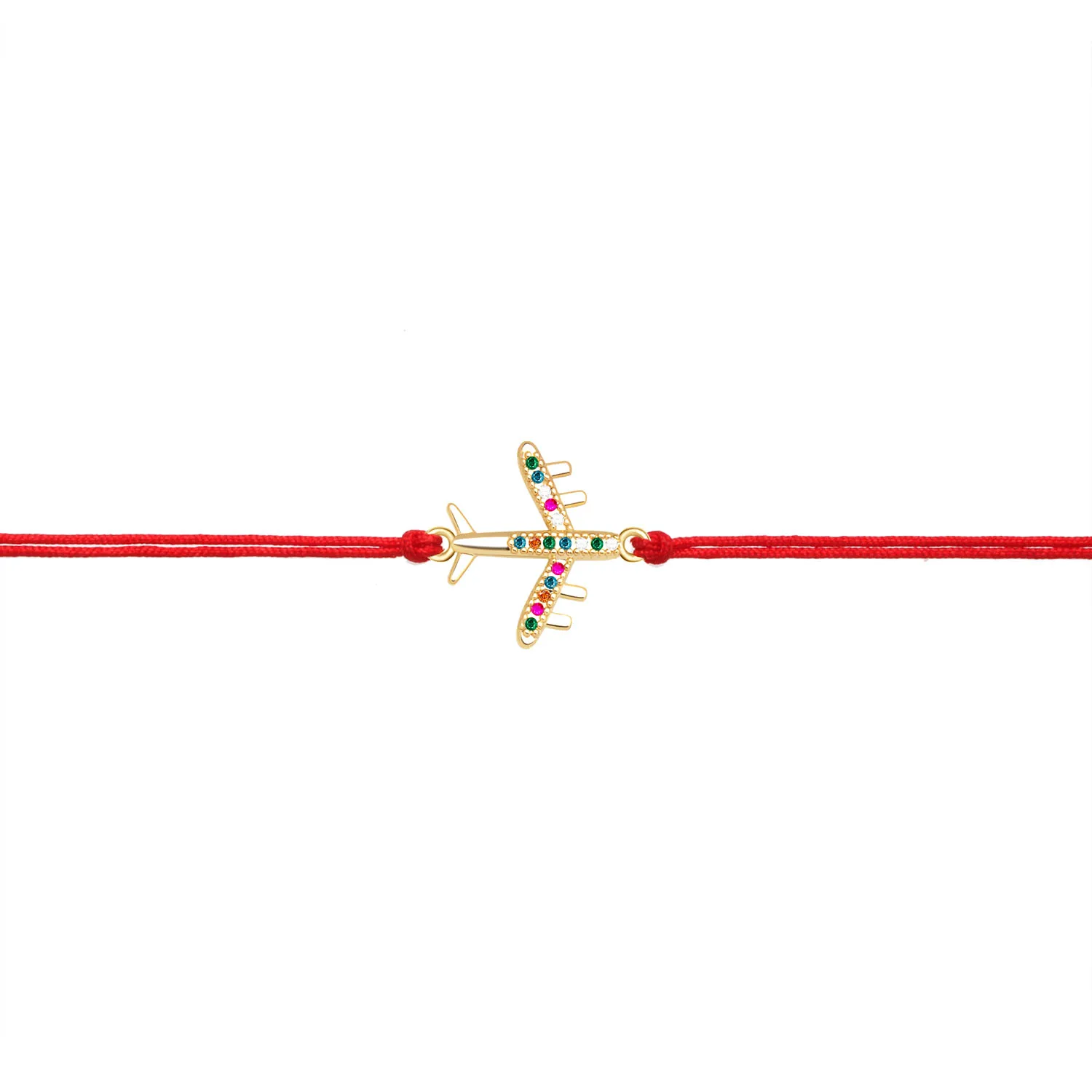 Shiny Multicolor Cubic Zirconia Airplane Charm Bracelet Women Girl Pretty Cute Plane CZ Stone Red Black String Jewelry Present