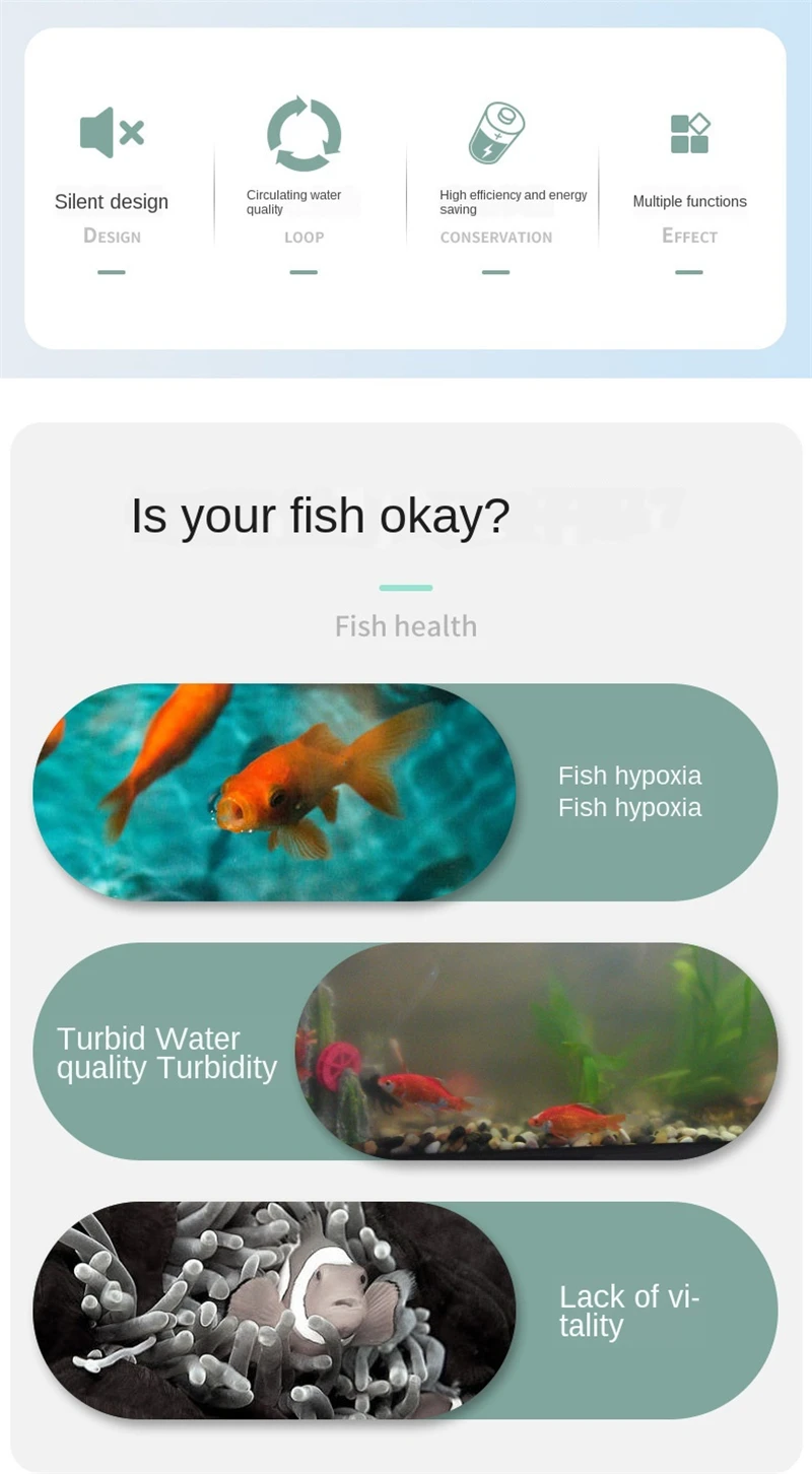 Аквариумный фильтр, встроенный насос для очистки воды и оксигенации...