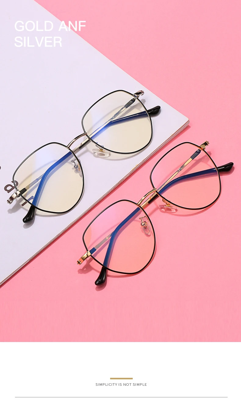 Очки для работы с компьютером, металлическая оправа для очков с защитой от синего света, женские круглые прозрачные линзы, 2020