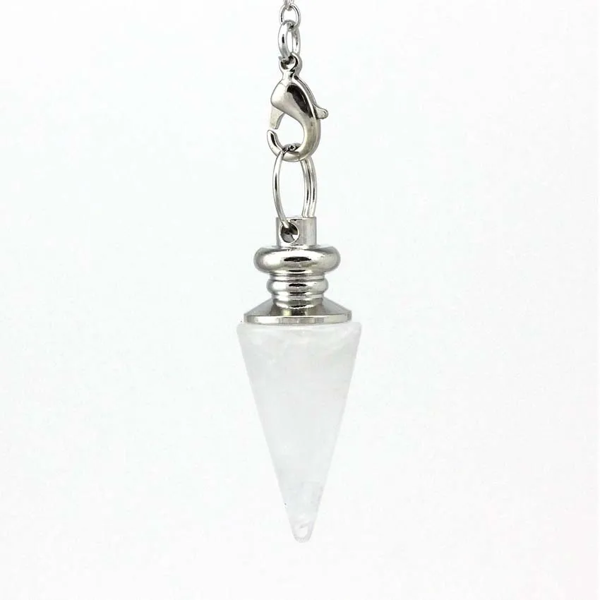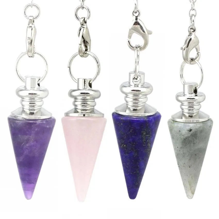 KFT конический Маятник из натурального камня, конические Подвески серебряного цвета, цепочка, хрустальные подвески для Dowsing, религиозные украшения рейки
