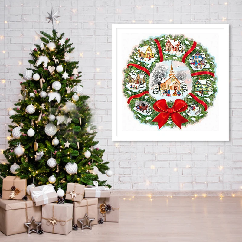 Алмазная 5D картина сделай сам, Рождественский венок, полноразмерная вышивка крестиком, алмазная вышивка, мозаика, мультяшное искусство, зимний подарок ручной работы