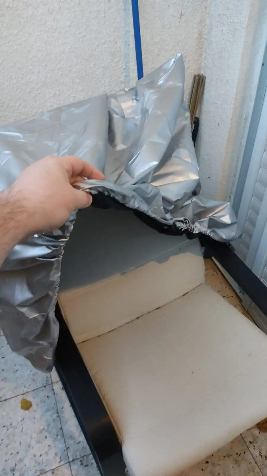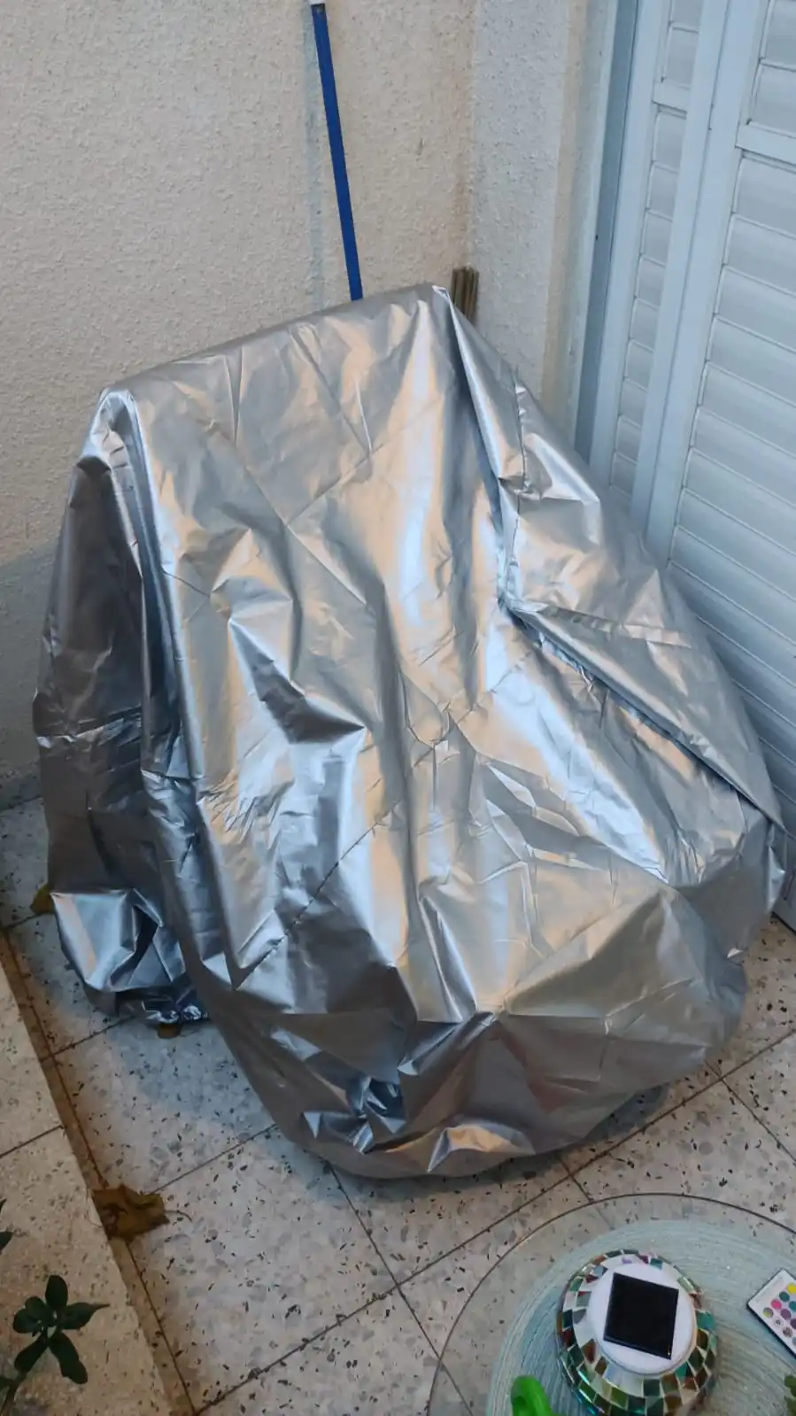 Материал очень тонкий, надеюсь сможет справиться с защитой садовой мебели зимой.