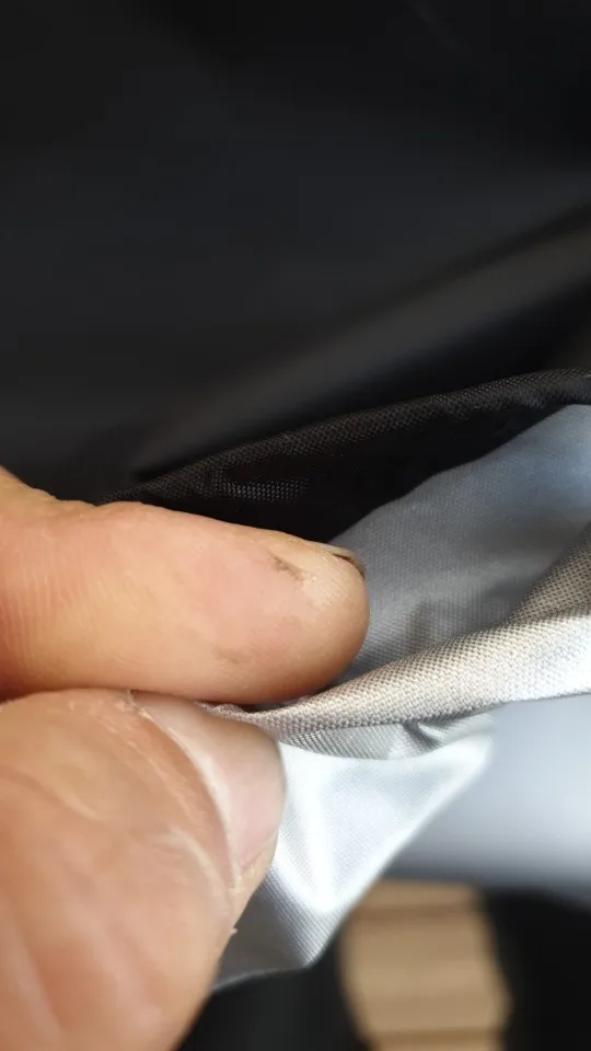 Материал тонкий, надеюсь, что он хорошо работает против дождя и солнца, спасибо!