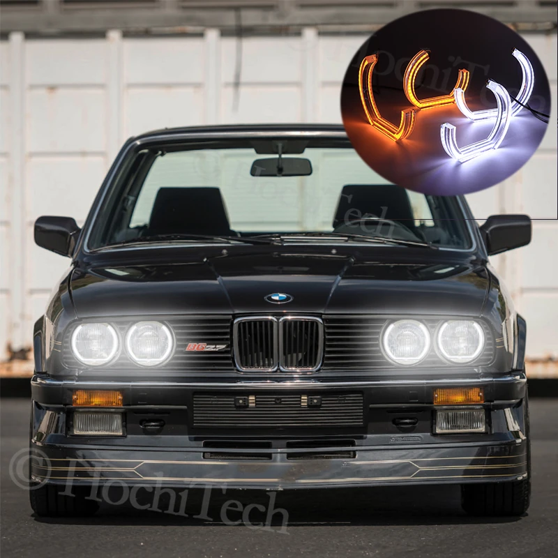 Переключаемые кольца с двойным янтарным белым кристаллом C светодиодный Angel Eyes Halo для BMW E30 E32 E34 1984 1985 1986 1987 1988 1999 2010