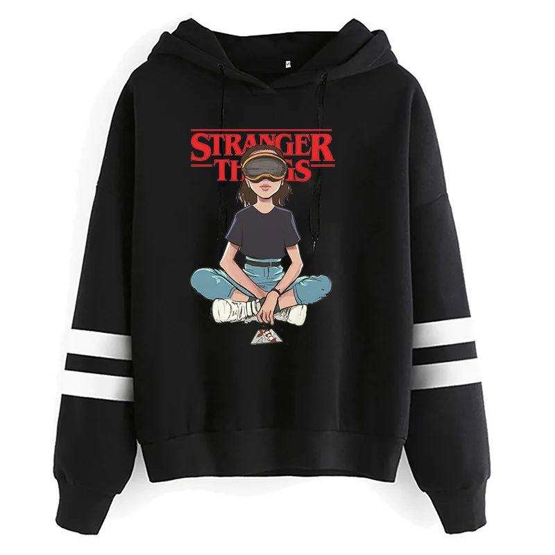 Eleven вверх дном с забавным мультипликационным принтом теплая верхняя одежда с капюшоном, для женщин из сериала очень странные Harajuku Ullzang Аниме Толстовка в стиле 90-х Графический Hoody женский
