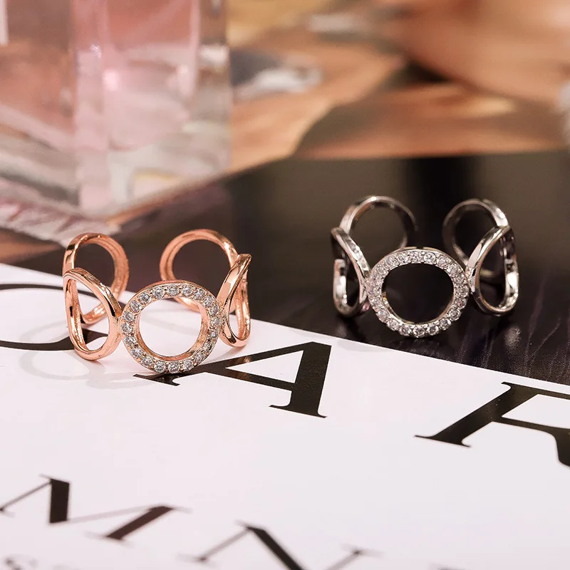 Женское модное кольцо с полым кругом, изысканное коктейльное кольцо с цирконом, свадебное кольцо, кольцо принцессы, женские Украшения