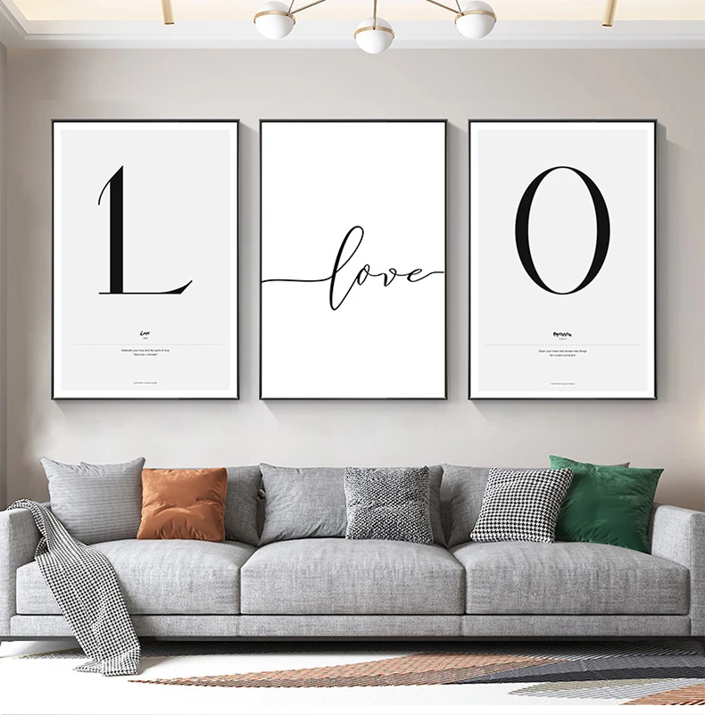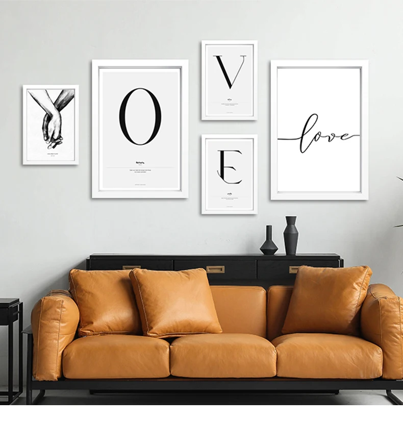 Черно-белый холст Художественная Живопись Любовь цитаты скандинавск...