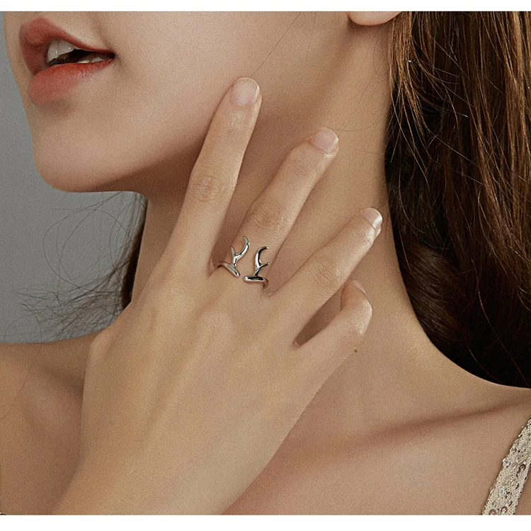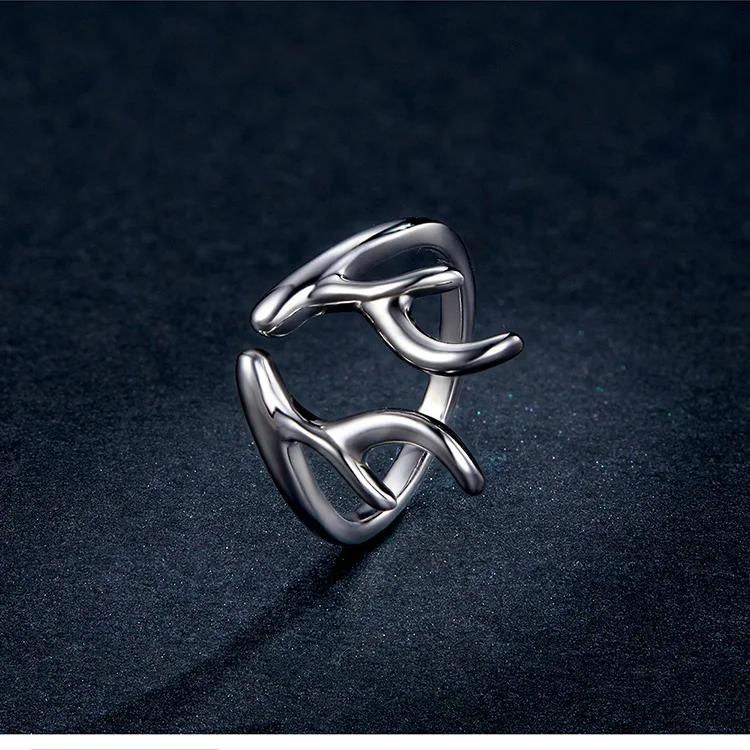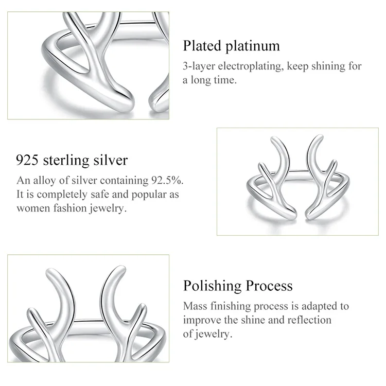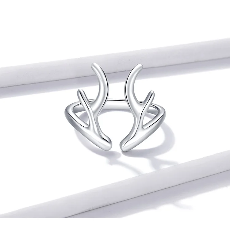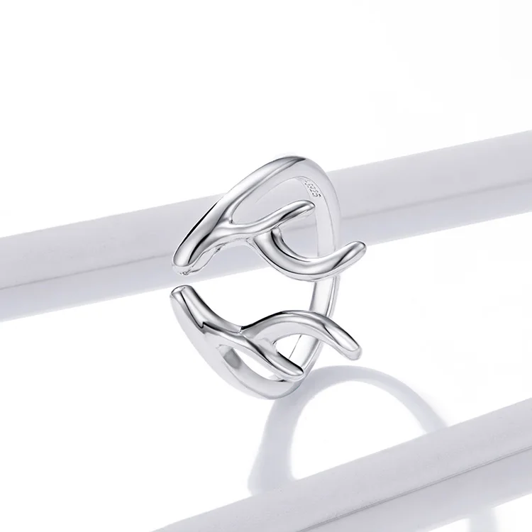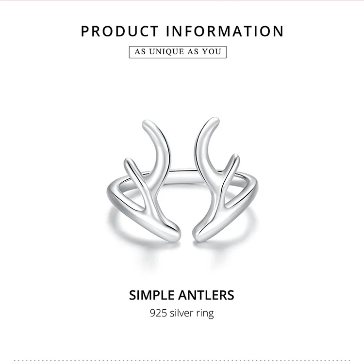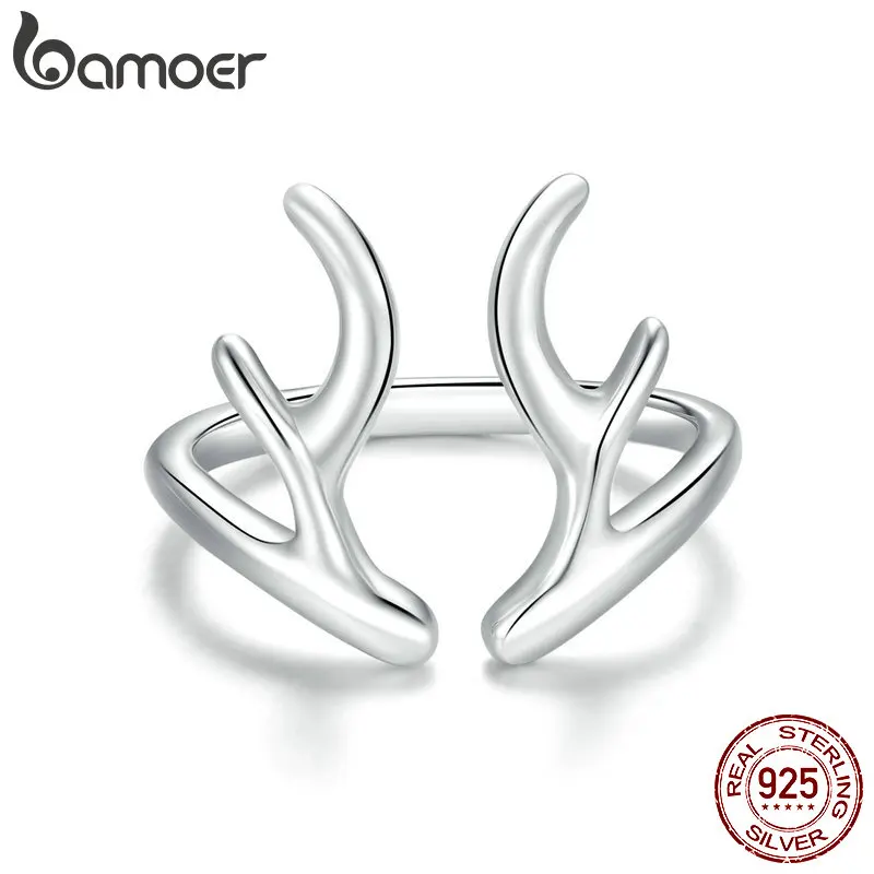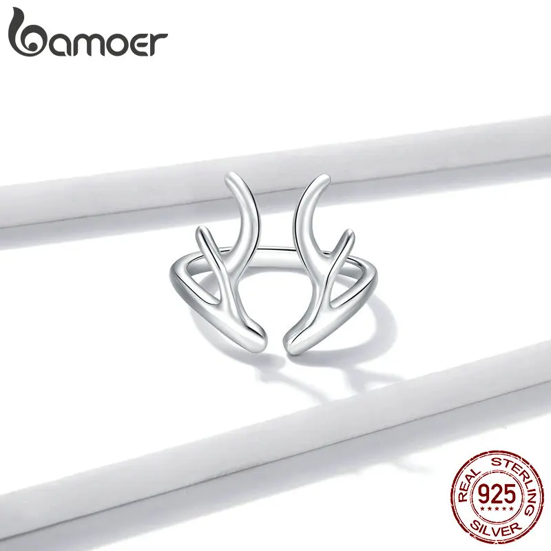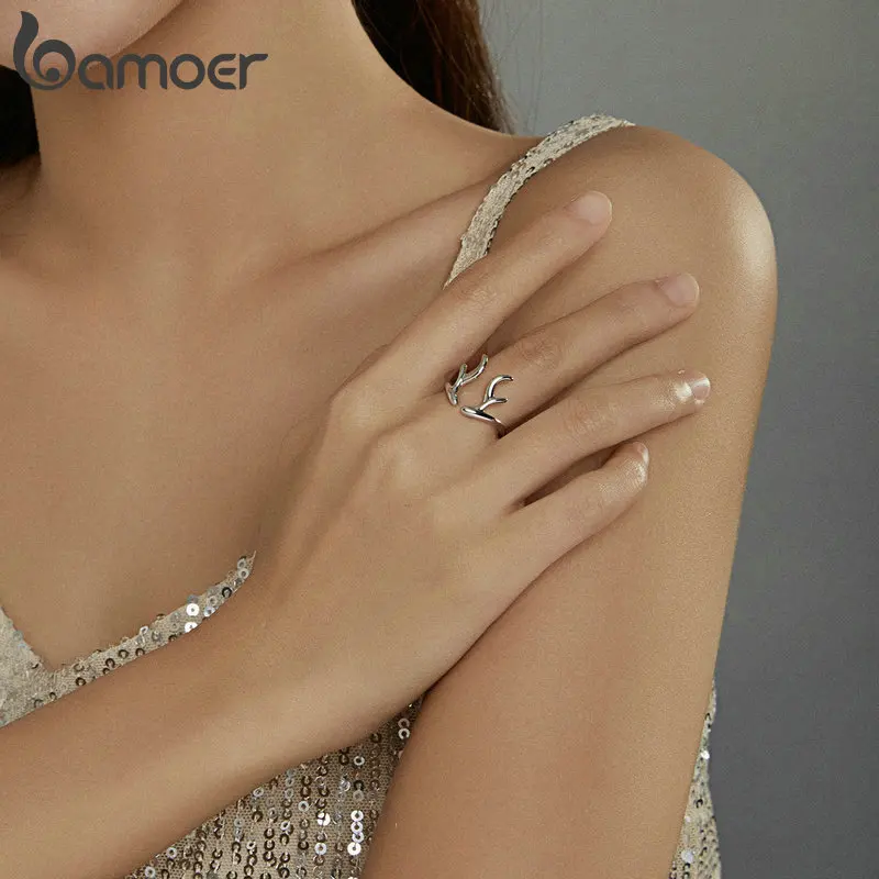 Bamoer 925 пробы серебряные простые рога Регулируемые кольца на палец для женщин штабелируемые корейский стиль Изящные Ювелирные изделия Anel BSR147