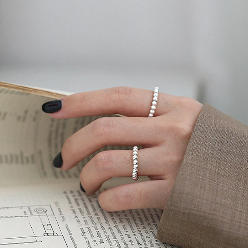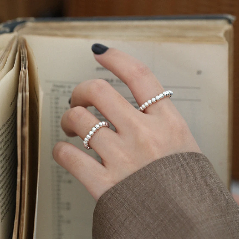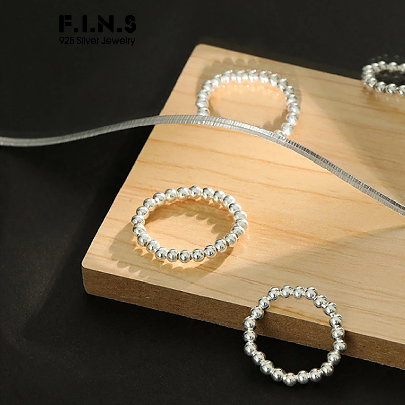 Тип драгоценностей: F.I.N.S минималистский эластичный шнур Переводные бусины S990 кольцо из стерлингового серебра регулируемое кольцо на палец штабелируемые кольца с бисером