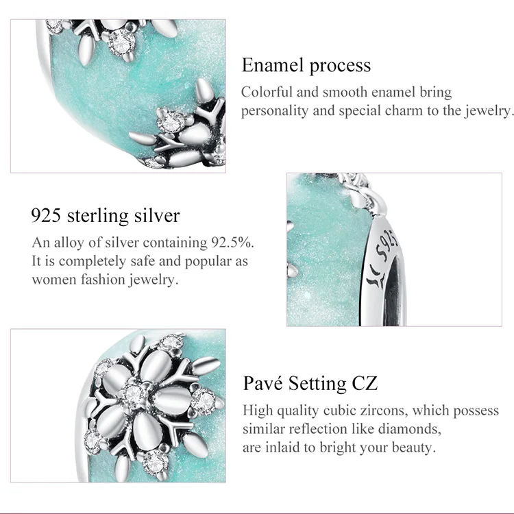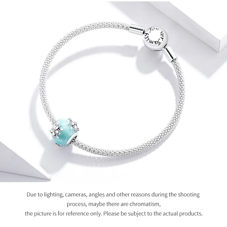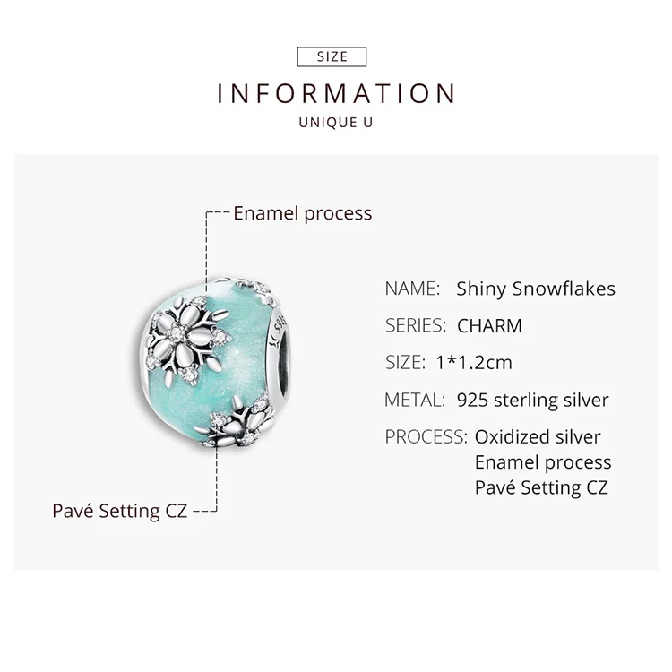 Bamoer, блестящие снежинки, очаровательные, подходят для оригинальных браслетов и браслетов, 925 пробы, серебряный, прекрасный браслет из бусин, сделай сам, ювелирное изделие SCC1650