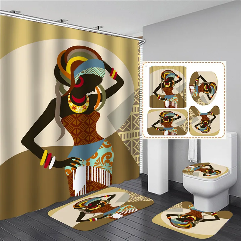 Занавеска для душа, в винтажном стиле, для женщин, в африканском стиле, Нескользящие коврики для ванной, мягкие коврики для туалета, украшение для дома