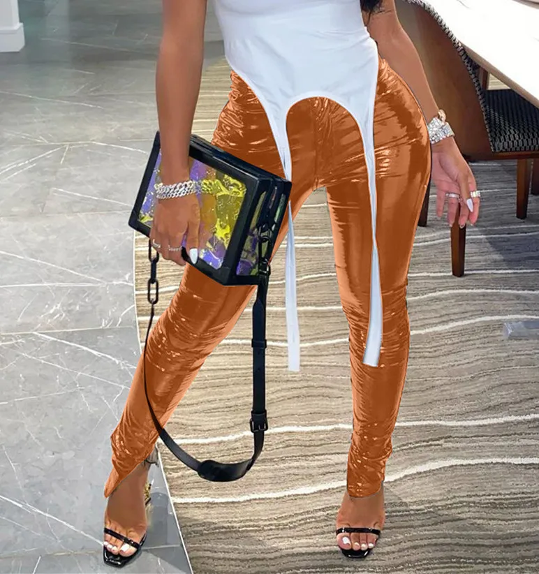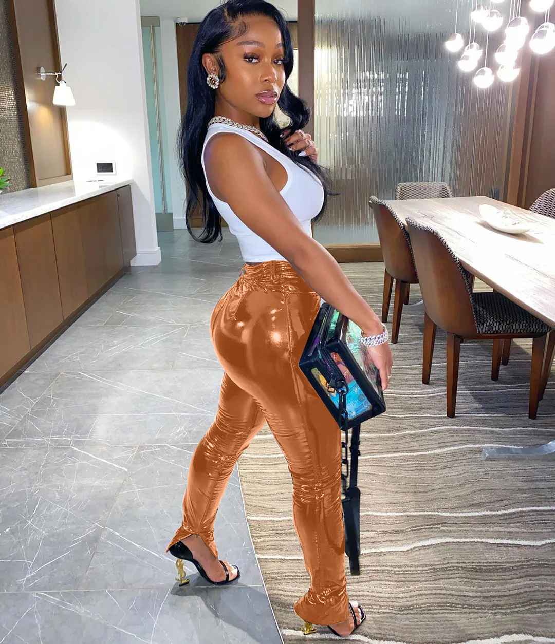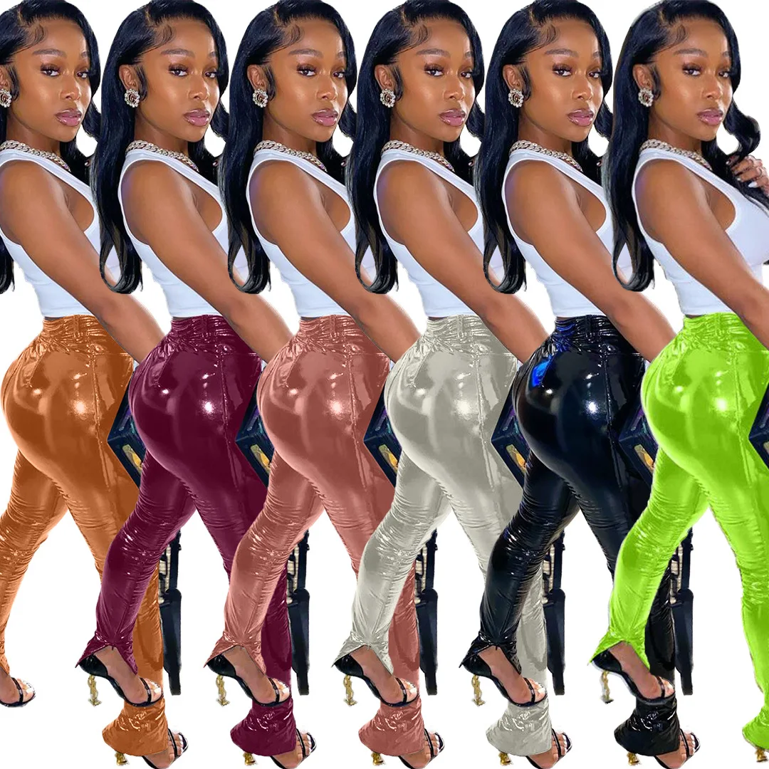 Модные штаны из искусственной кожи, джоггеры, женские спортивные штаны, женские кожаные штаны для фитнеса Skiiny, однотонные