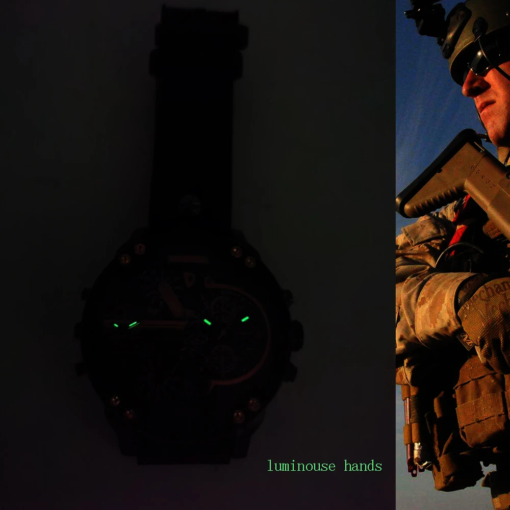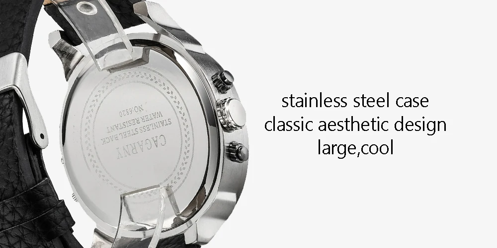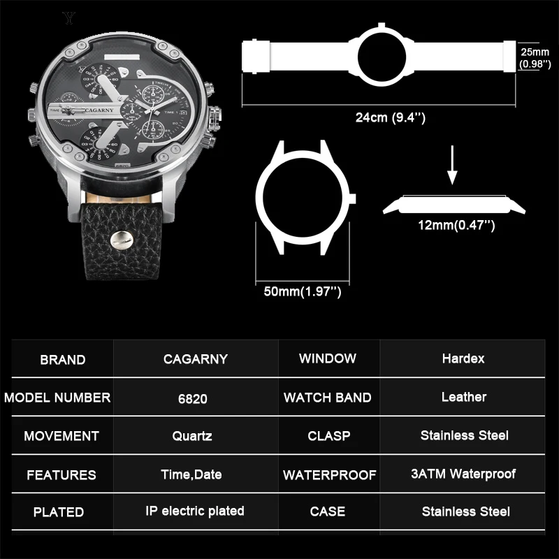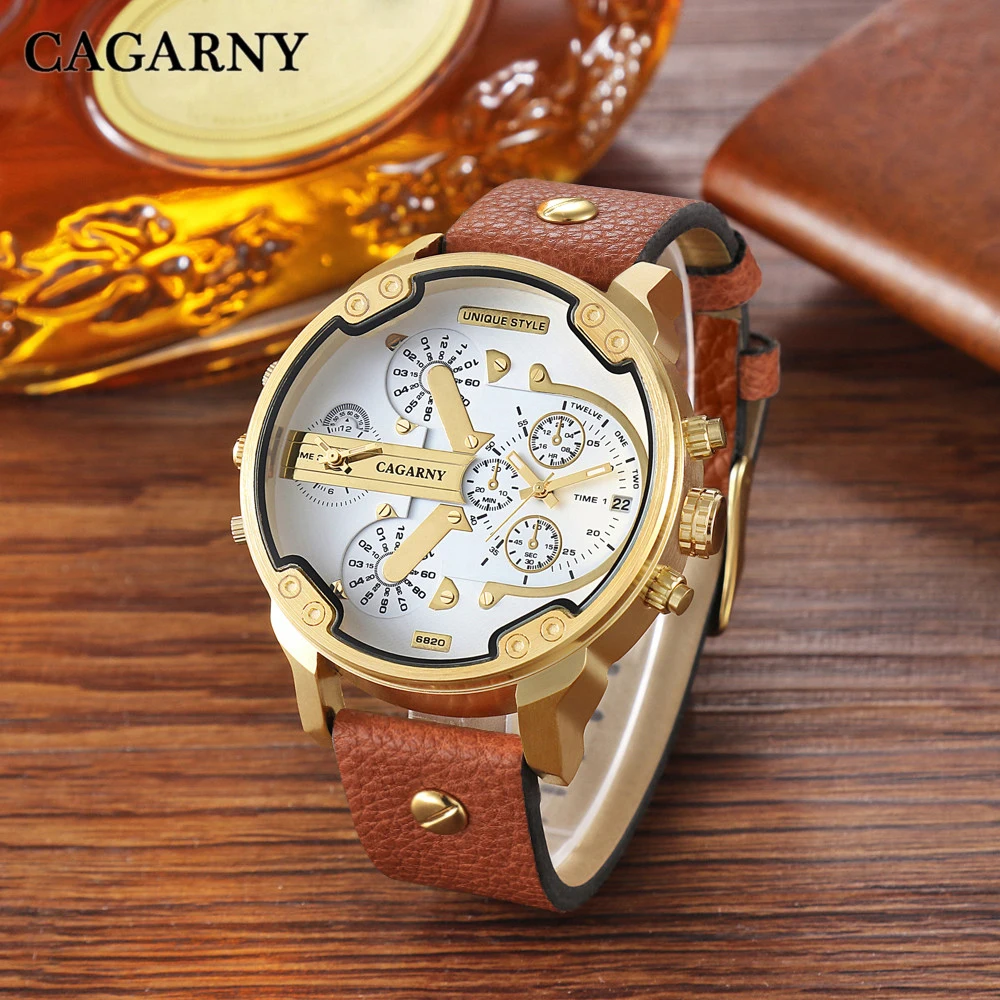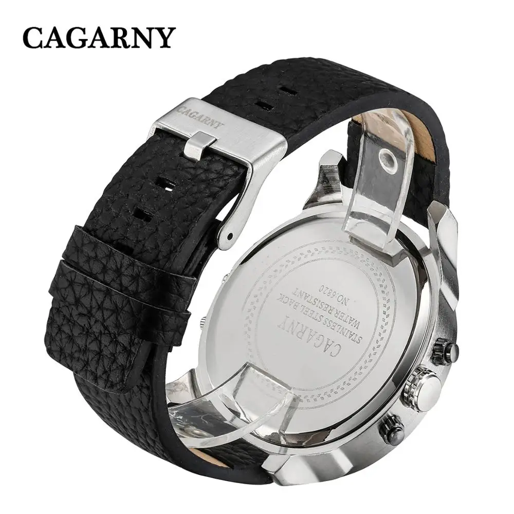 Часы мужские кварцевые с двойным дисплеем, кожаным ремешком и большим корпусом, 6820