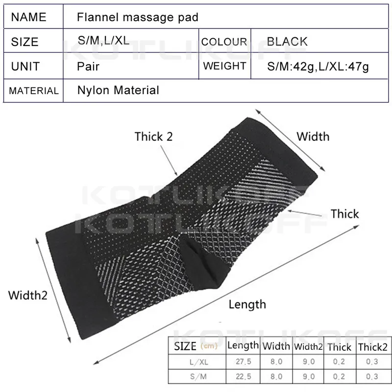 1. Рекомендуемый дизайн-подошвенный фасциит носок и голеностопный компрессионный рукав-это короткие Компрессионные носки, которые помогают улучшить кровообращение, уменьшить воспаление и помочь заживлению. Они не только обеспечивают поддержку подошвенного фасцита, но и помогают при других дефектах стопы, таких как отек, ахиллесовая пятка и шпоры лодыжки.