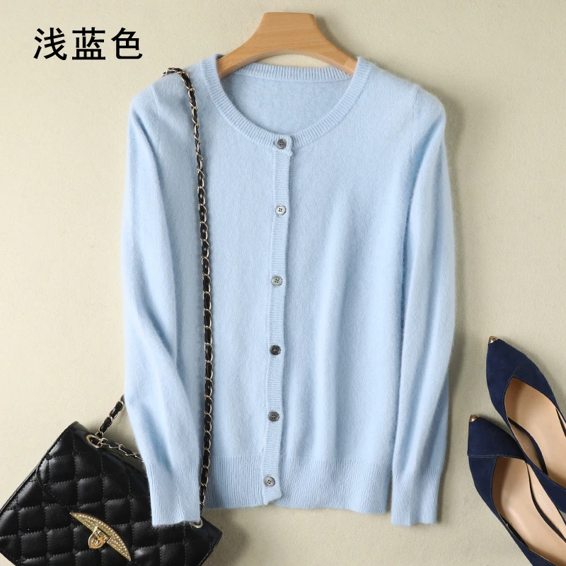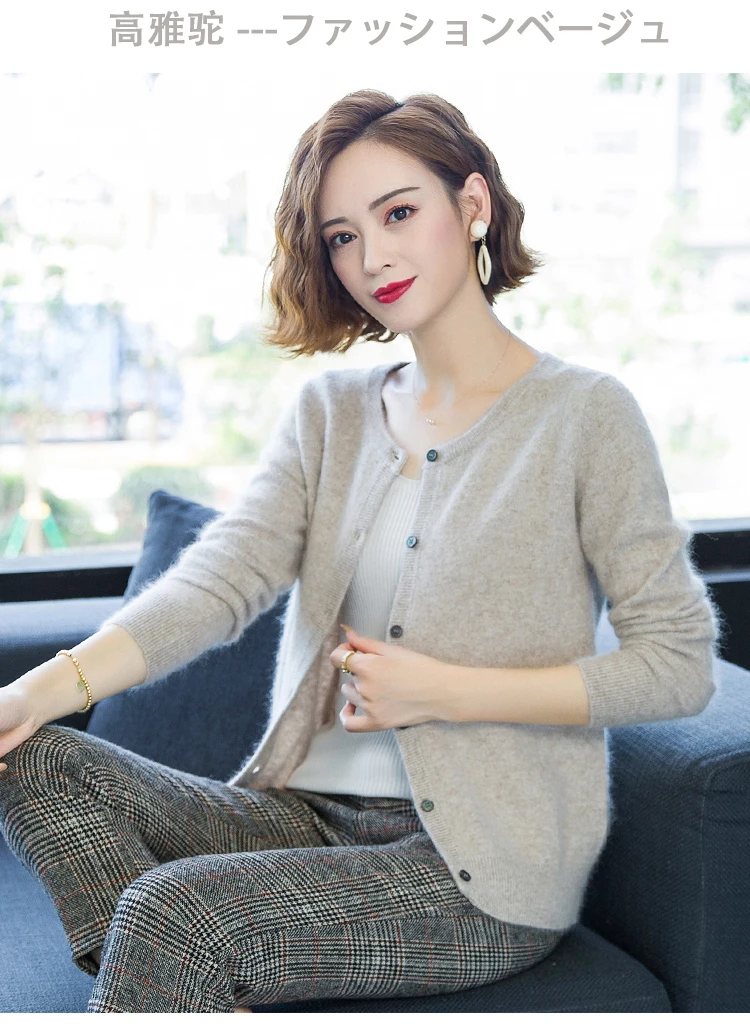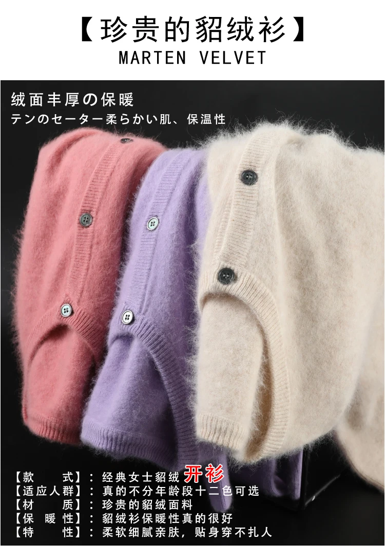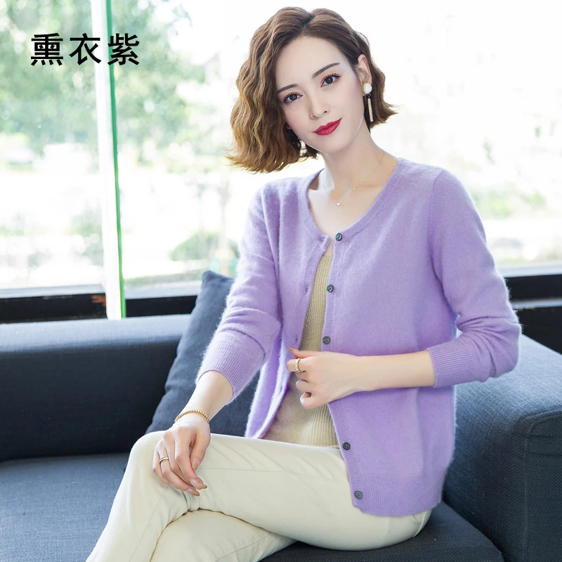 2020 женский кардиган супер теплый чистый свитер кашемир с норкой свободный женский свитер с круглым вырезом Женские однотонные вязаные кардиганы