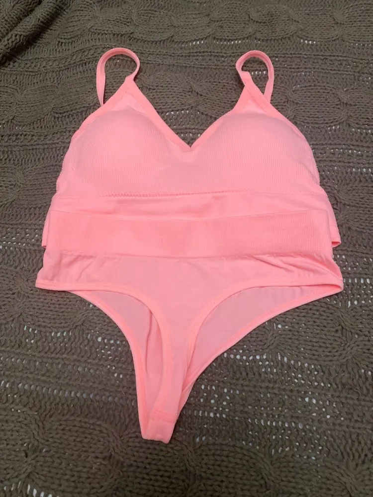 Сел идеально , все строчки ровные , ниток лишних нет . Топ- есть вкладыши съёмные , но единственное ткань немного просвечивает поролон , поэтому я их убрала . Трусики с высокой посадкой . Мега быстрая доставка . Много других расцветок .