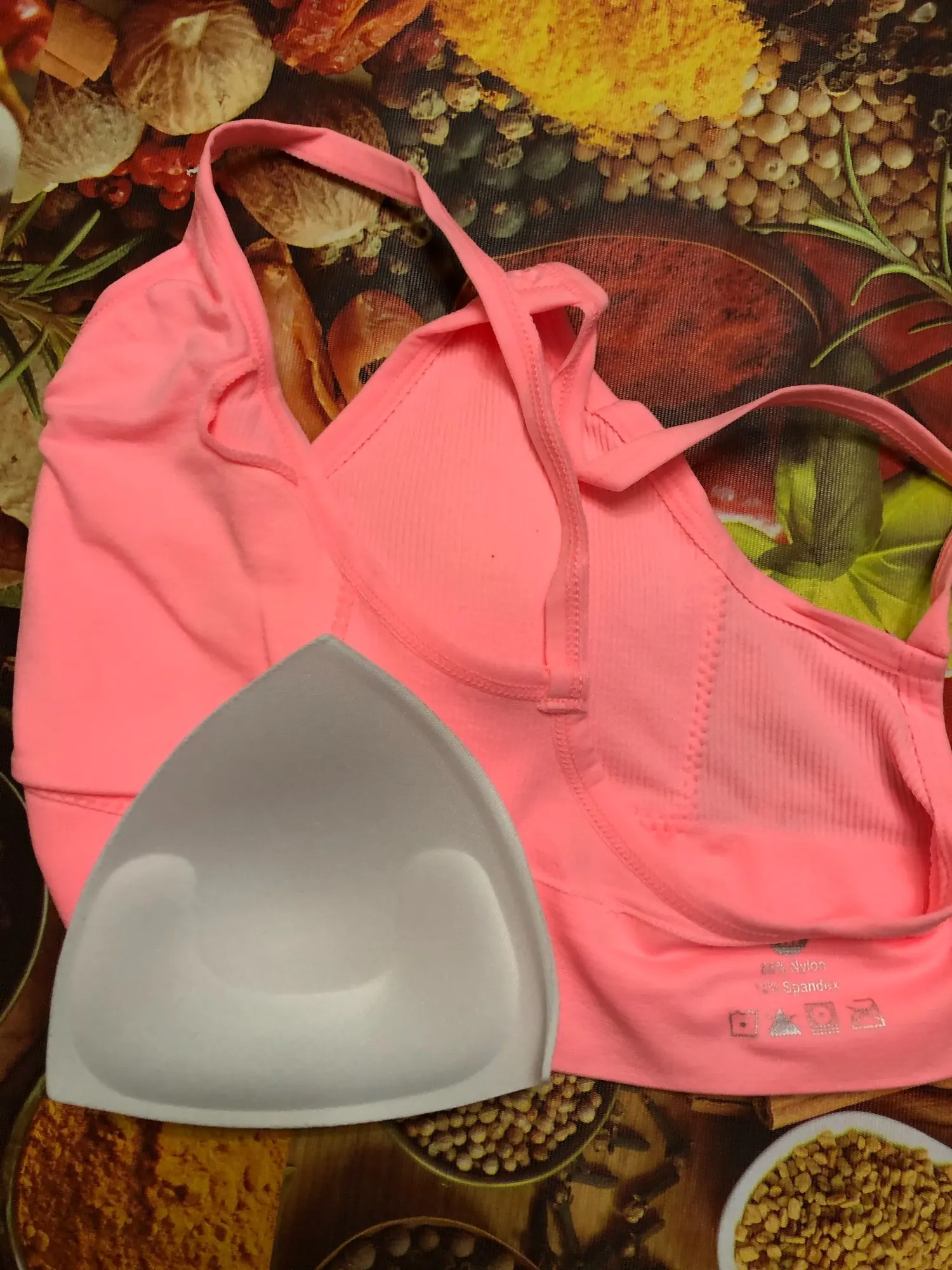 Размер в размер, чашечки можно высунуть, мне лично удобно без них. Сделали сурприз-положили побрякушку для запястья
