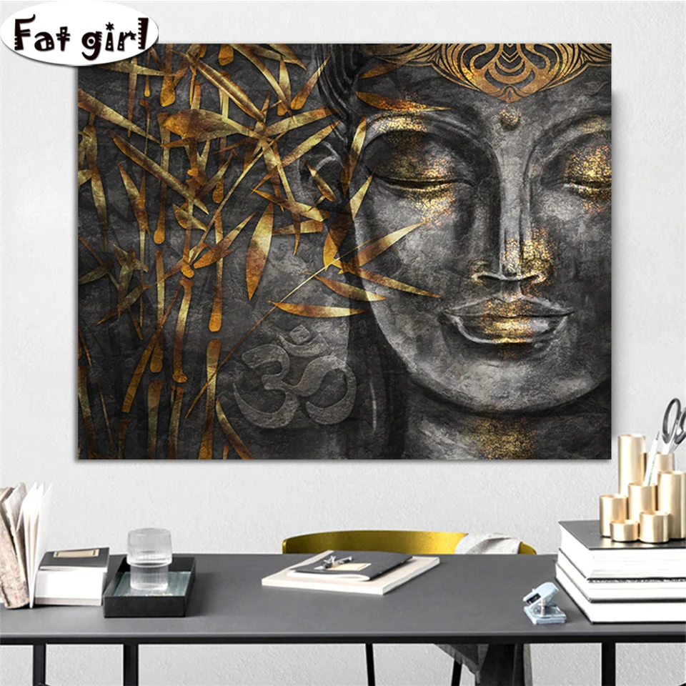 5D Diy алмазные картины статуя Будды с золотыми бамбуковыми листьями крестиком 3D квадратные круглые стразы комплекты для вышивки/мозаики