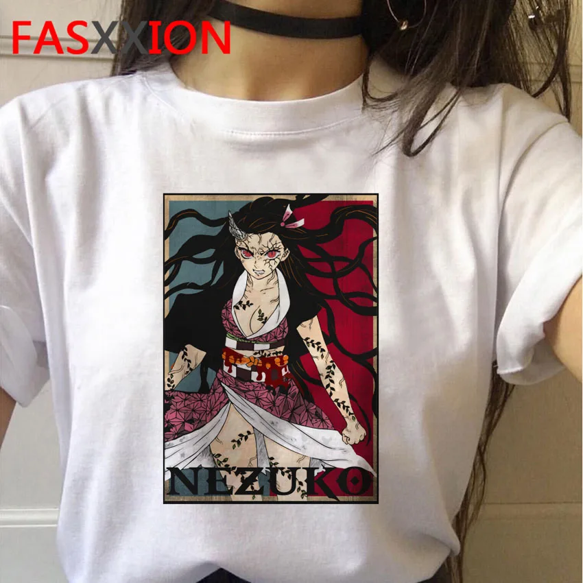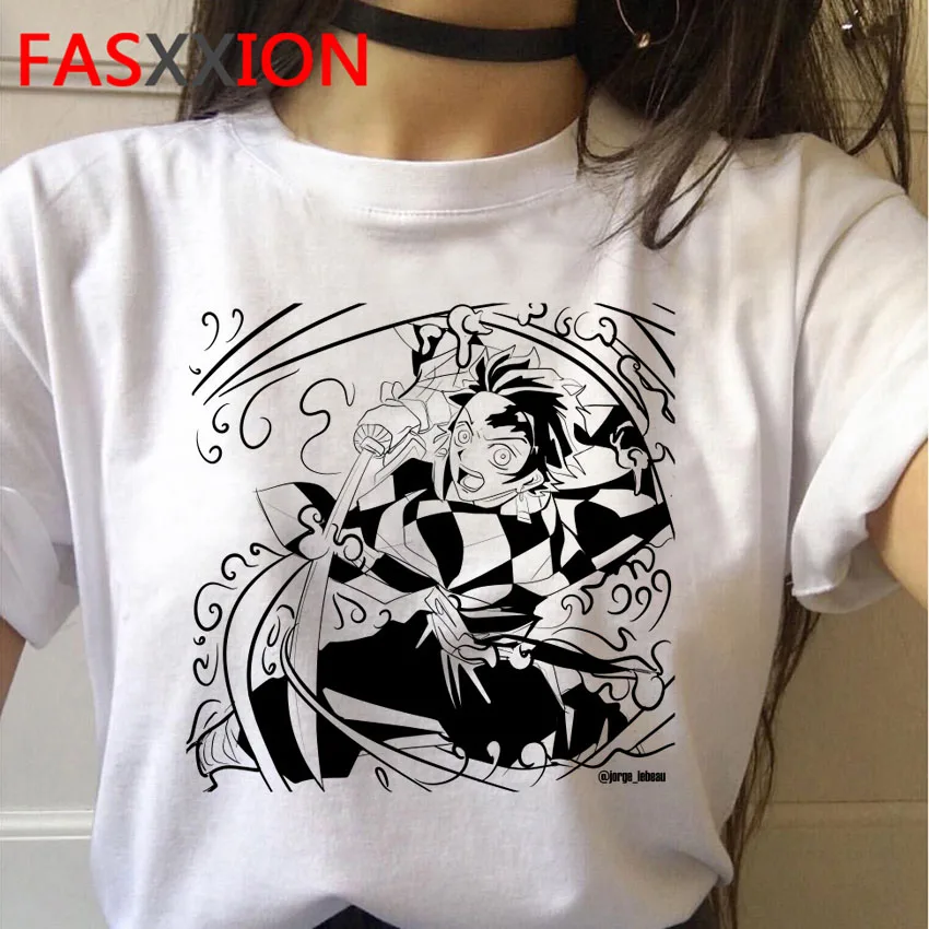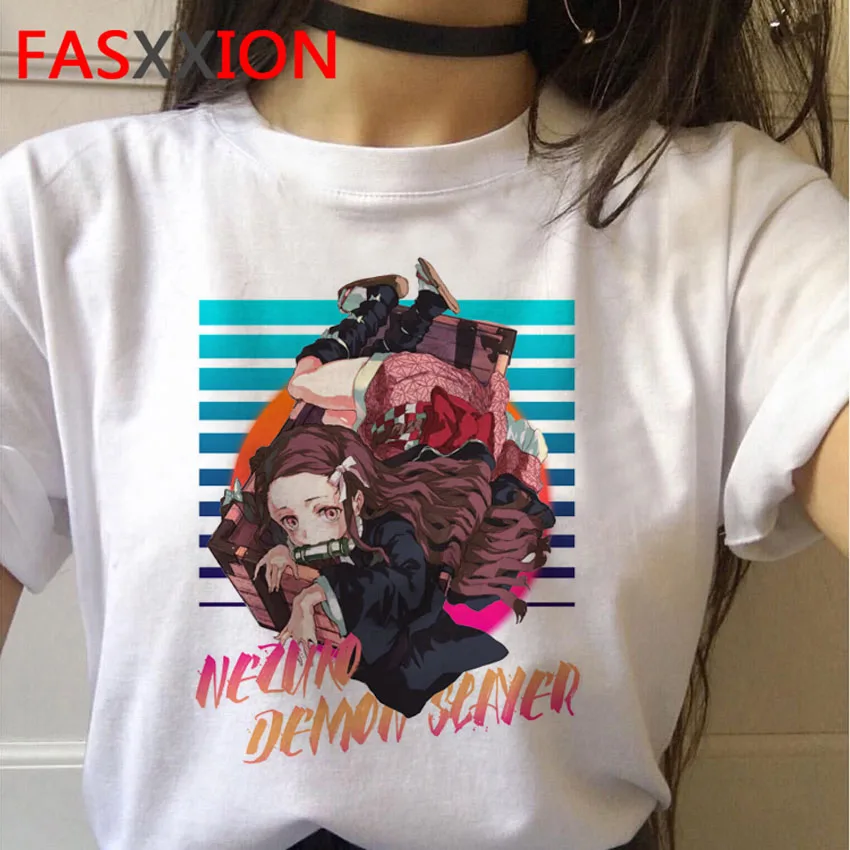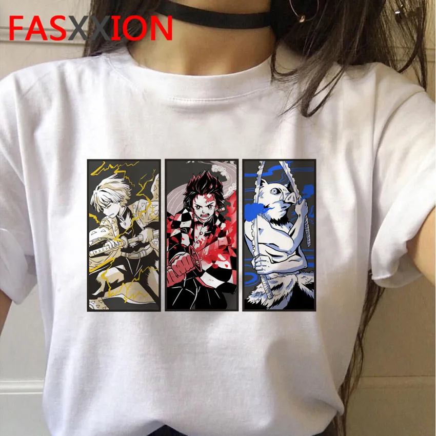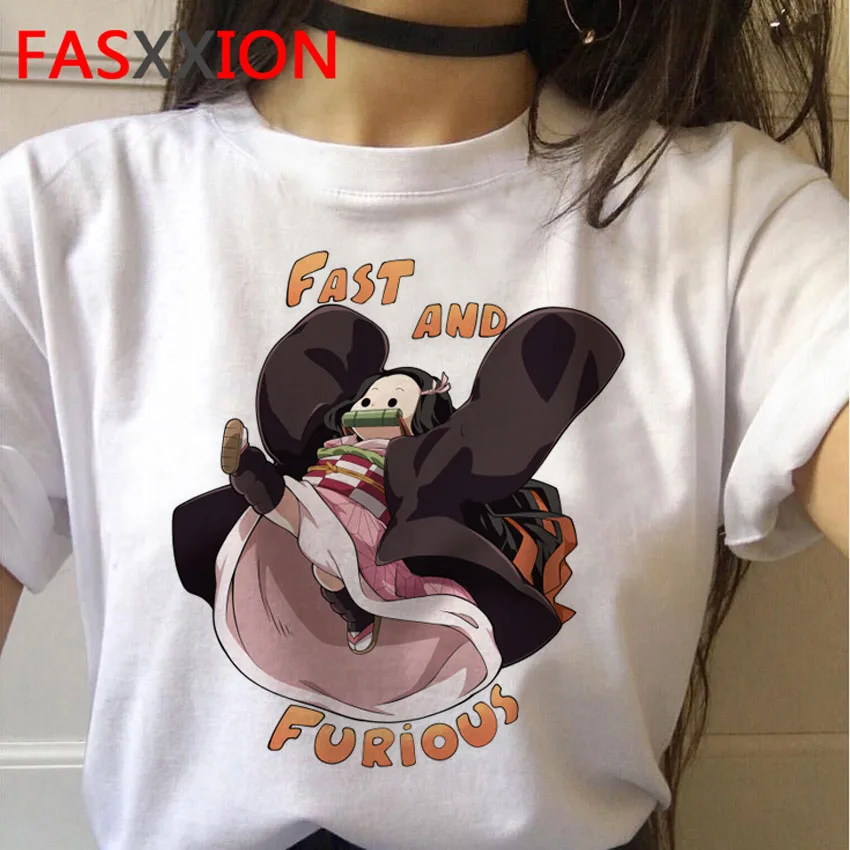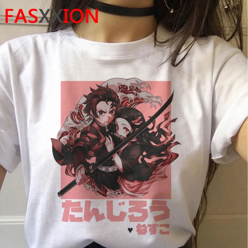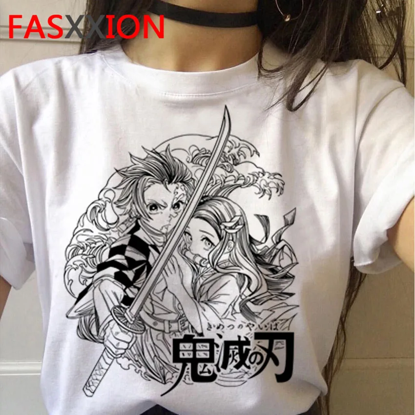Футболка kimetsu no yaiba с изображением рассекающего демонов женская, топ с графическим рисунком в стиле японского аниме, милая уличная одежда в стиле Харадзюку, панк