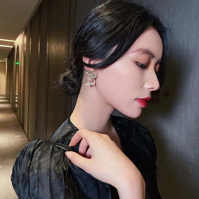 Роскошные серьги в тяжелой индустрии с цирконием и жемчугом, элегантные женские ювелирные украшения, темпераментные женские рождественские серьги для вечеринок