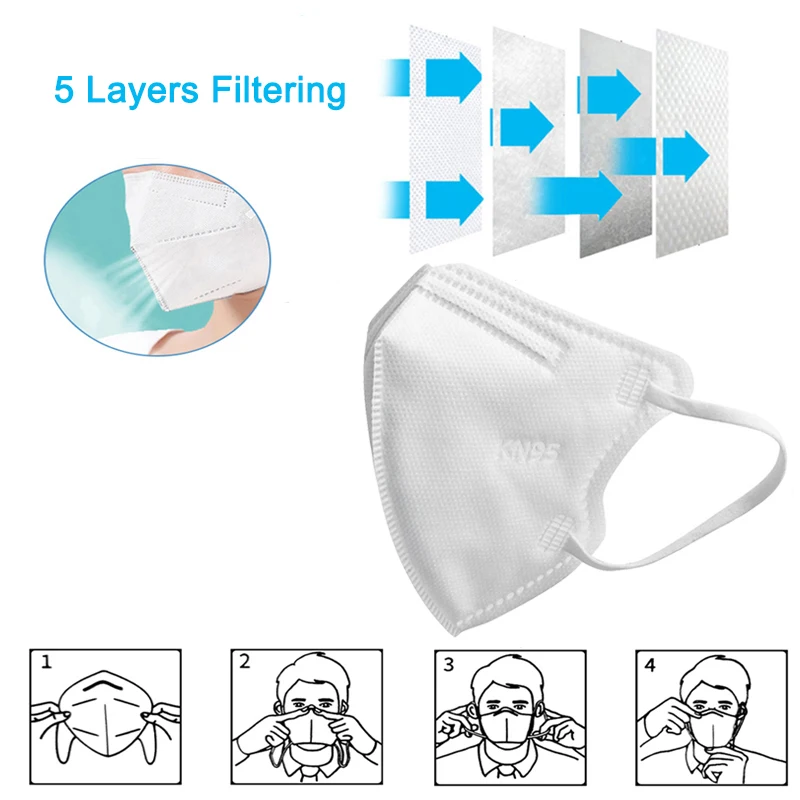 Противовирусная 5-слойная маска KN95 для лица с фильтром PM2.5, 30 ...