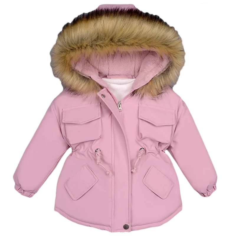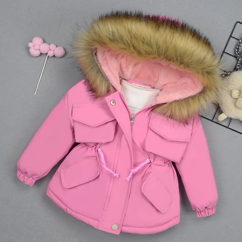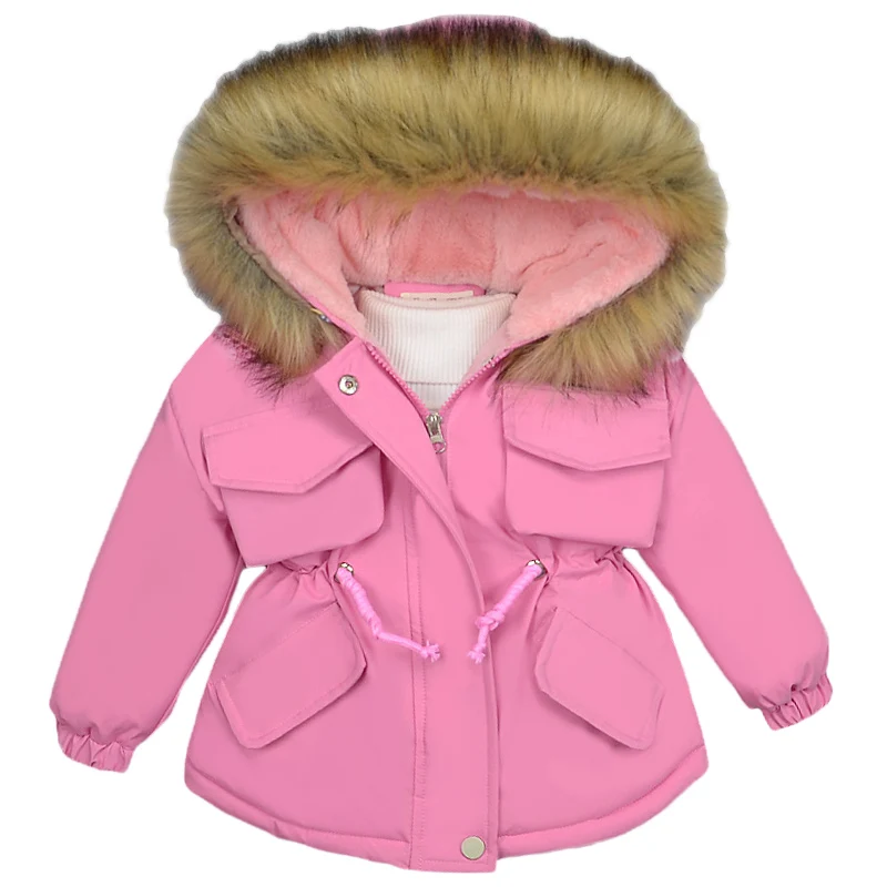 Зимняя теплая куртка с капюшоном и меховым воротником для девочек, верхняя одежда, Детские Рождественские комбинезоны, одежда с хлопковой подкладкой, верхняя одежда