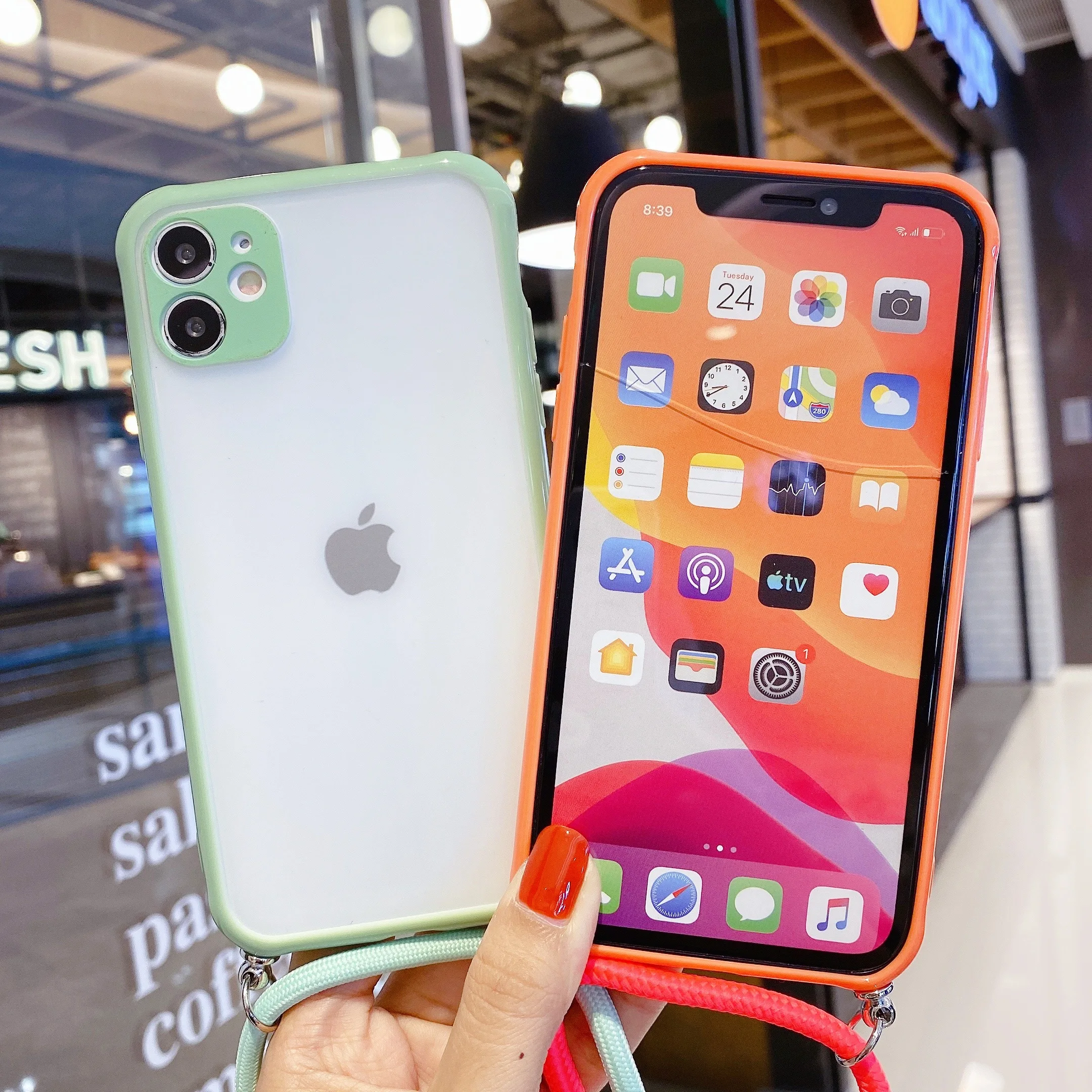 Прозрачный противоударный чехол карамельного цвета для iPhone XS 11 Pro Max XR 7 8 Plus, ожерелье, шнур, цепочка, подвесная веревка, чехол через плечо