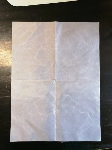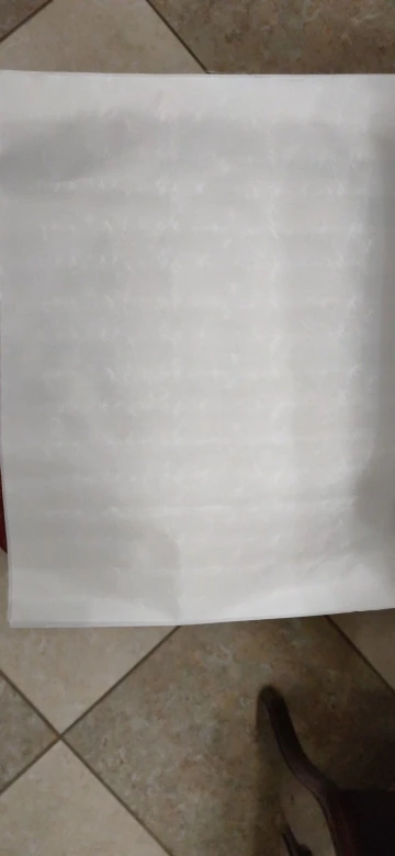 Доброе утро! Хорошая бумага, размер с протвинь, единственное, не сворачивают её в рулон, а складывают как бумагу, в местах сгиба бывает рвётся. В этот раз пришла не порвана, целая, а так мне нравится этот продукт.