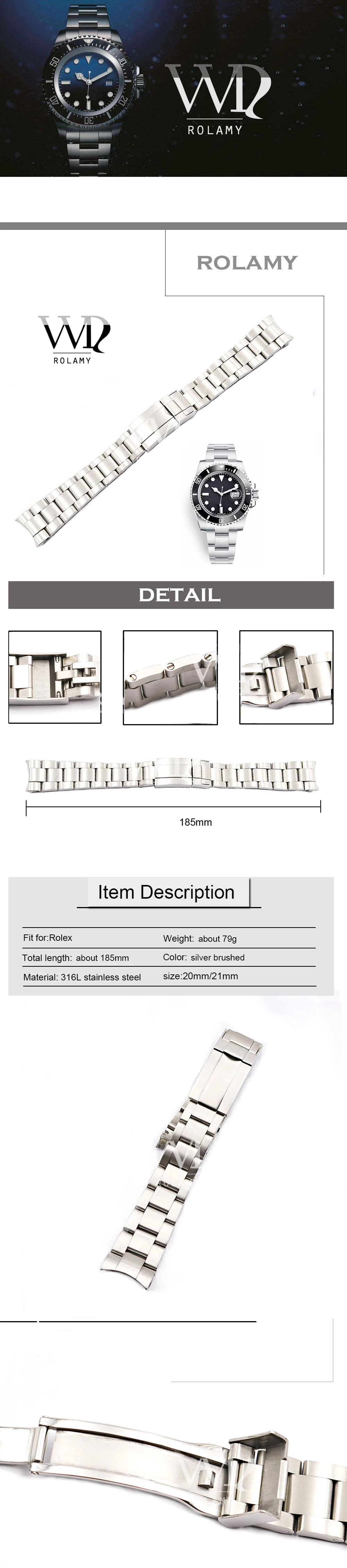 Ремешок Rolamy из нержавеющей стали для наручных часов, 20 дюймов, 21 мм