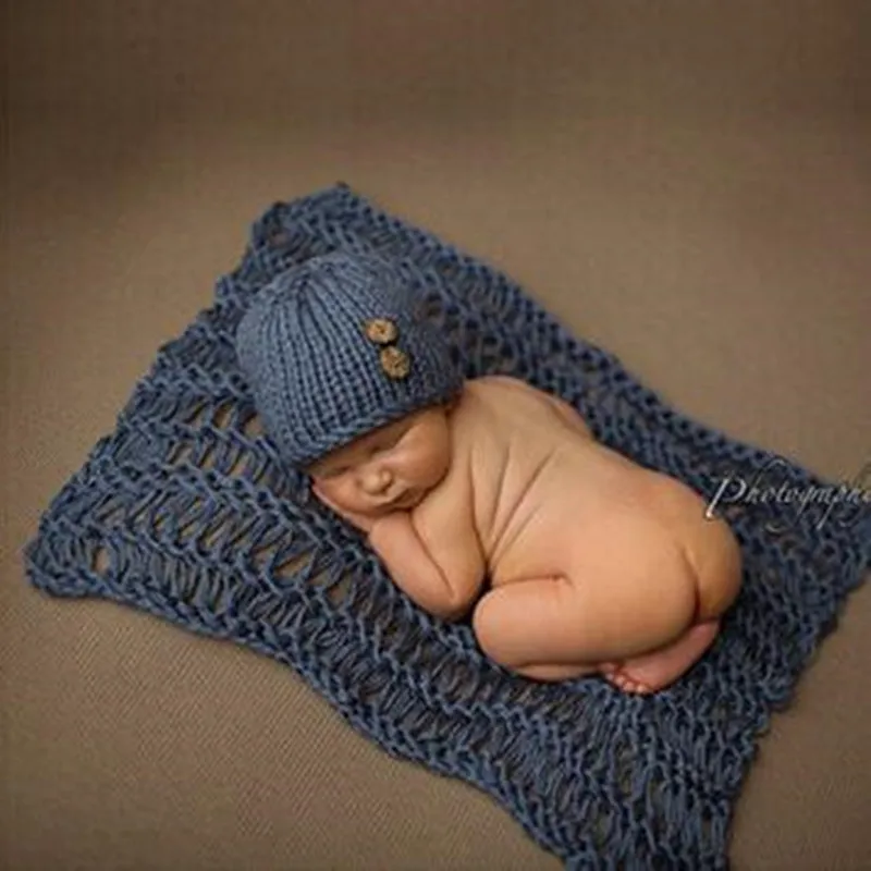 Хлопчатобумажные одеяла и шапки ручной вязки для фотосъемки новорожденных