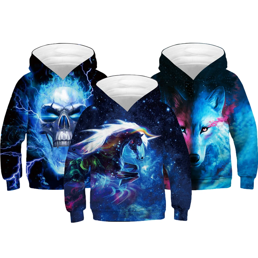 Худи для мальчиков 110-160 см, Осеннее 3D пальто с изображением волка, звездной лошади для мальчиков и девочек, подарок на Рождество, Хэллоуин, Детское пальто
