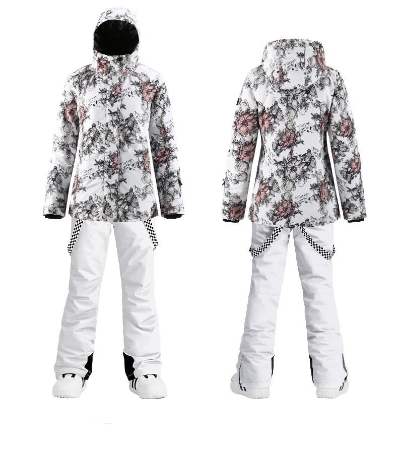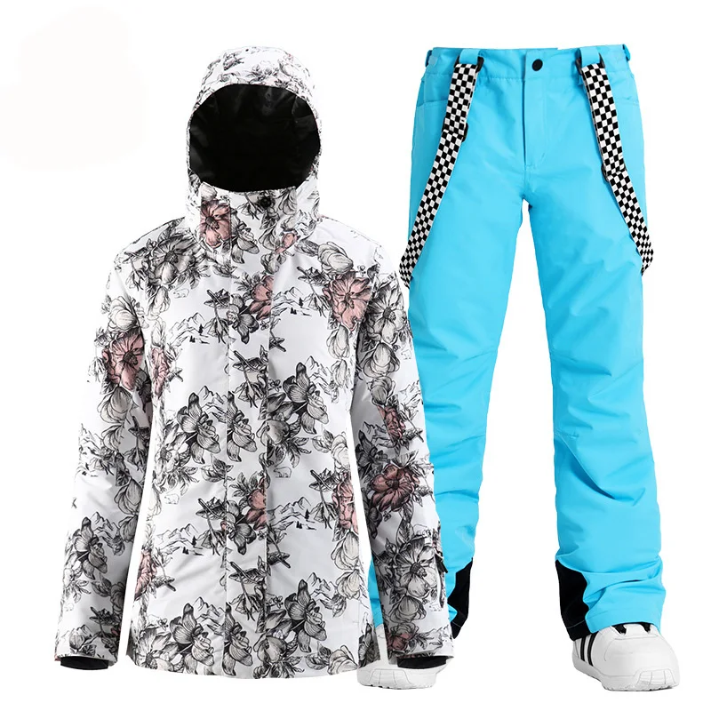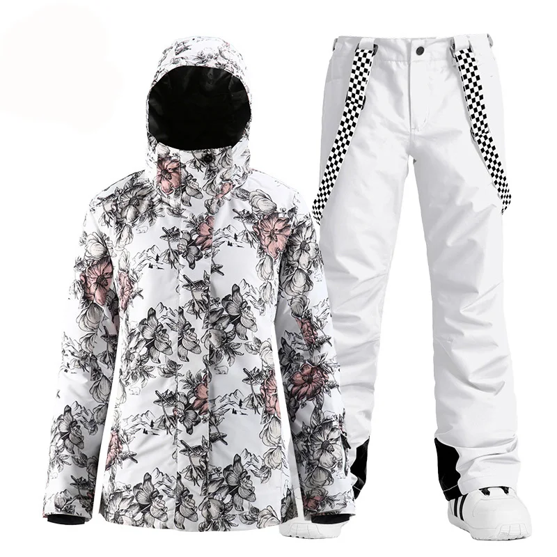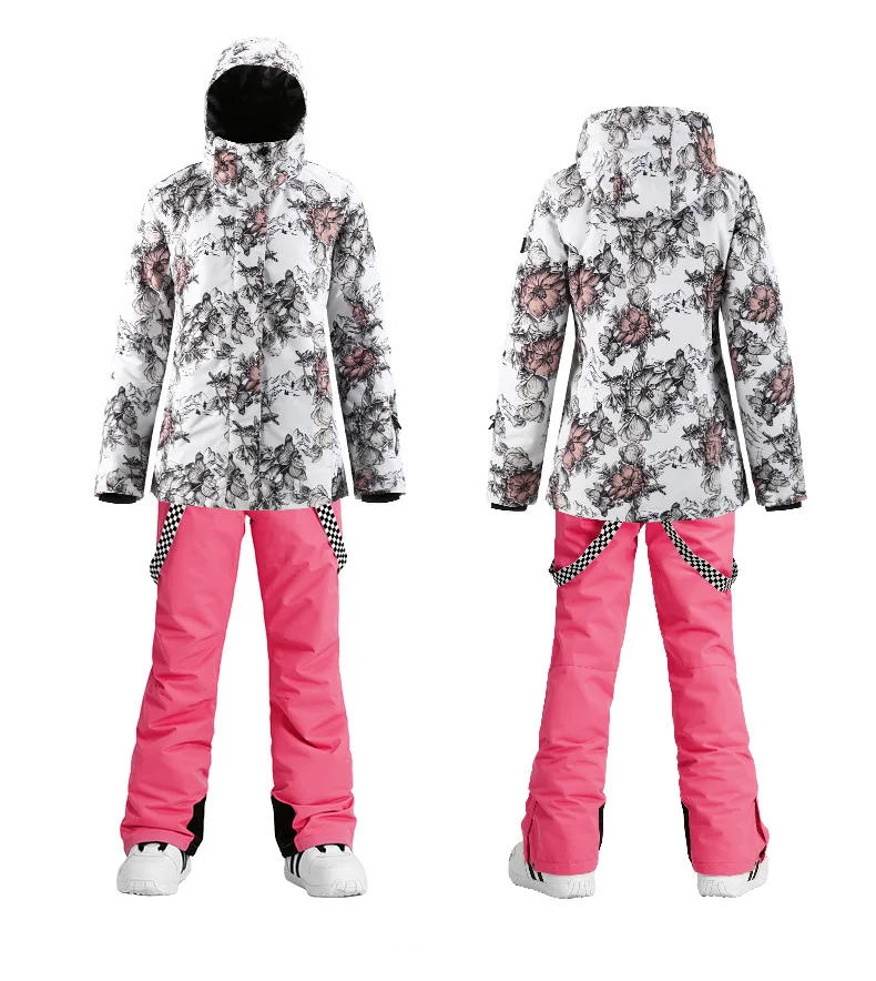 Женский костюм для сноуборда SMN, зимний водонепроницаемый костюм с цветочным принтом, куртка и штаны на бретелях